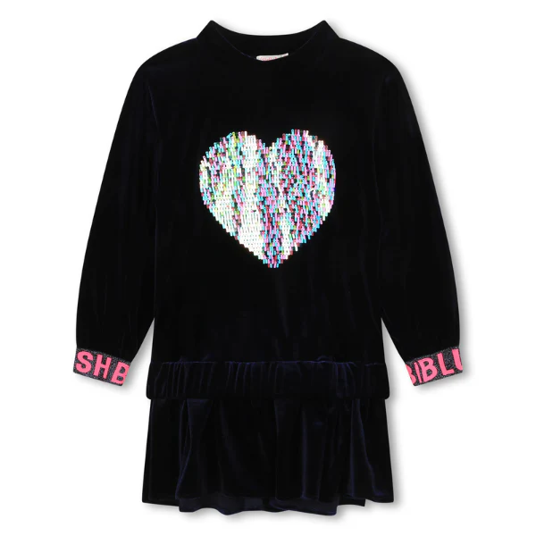 Abito bambina Billiblush in velluto con cuore in paillettes sul davanti, maniche lunghe e polsino elasticizzato
