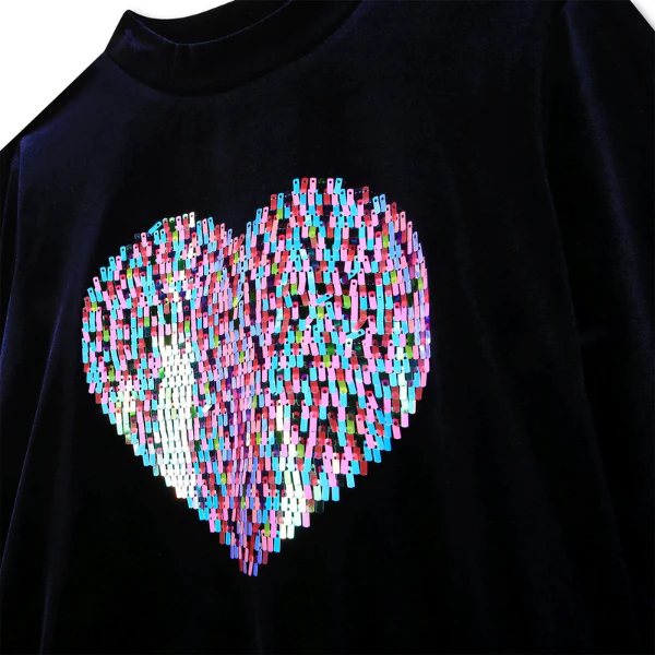 Abito bambina Billiblush in velluto con cuore in paillettes sul davanti, maniche lunghe e polsino elasticizzato composizione 6% elastan 94% poliestere rifinitura 100% paillettes