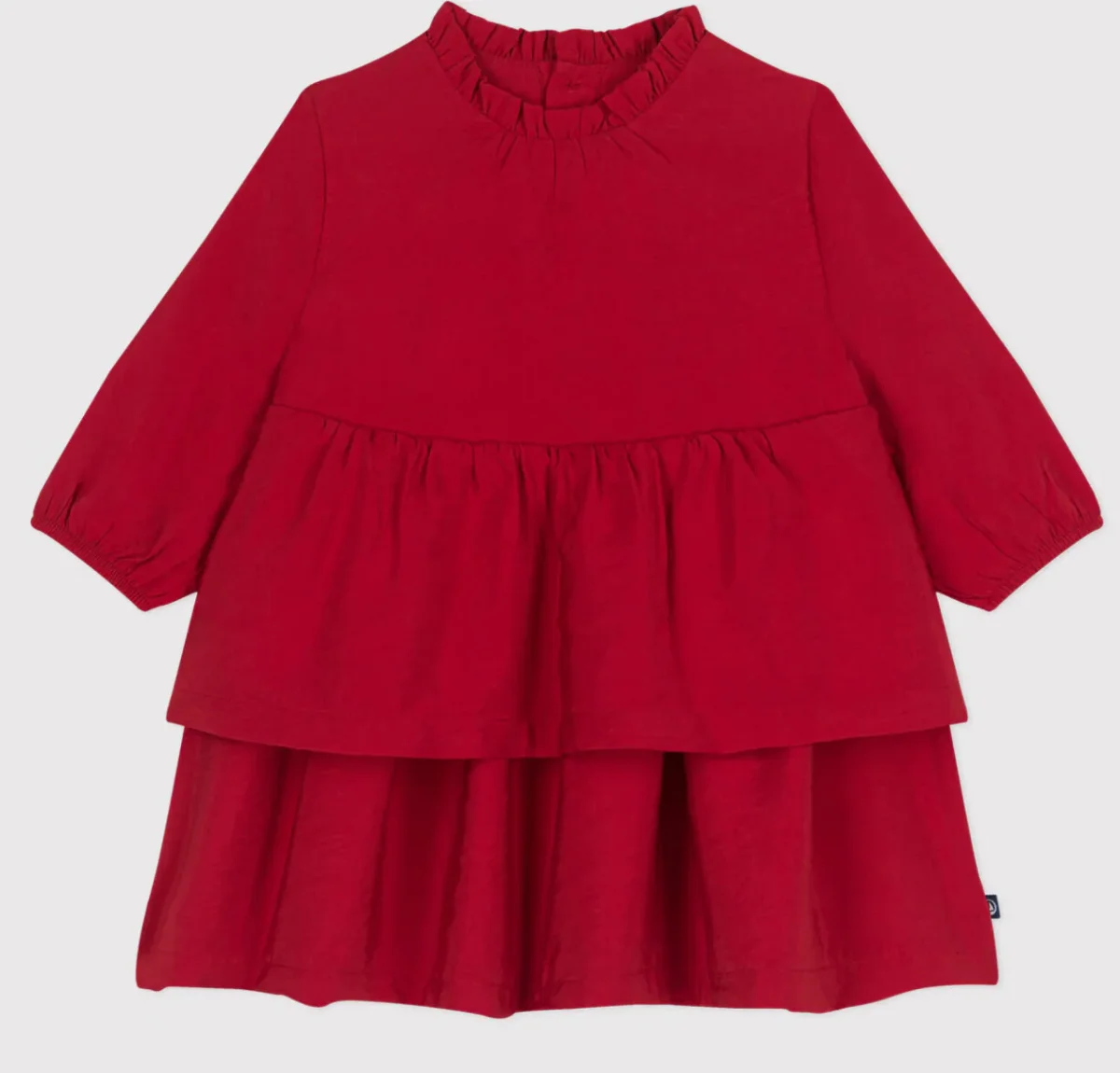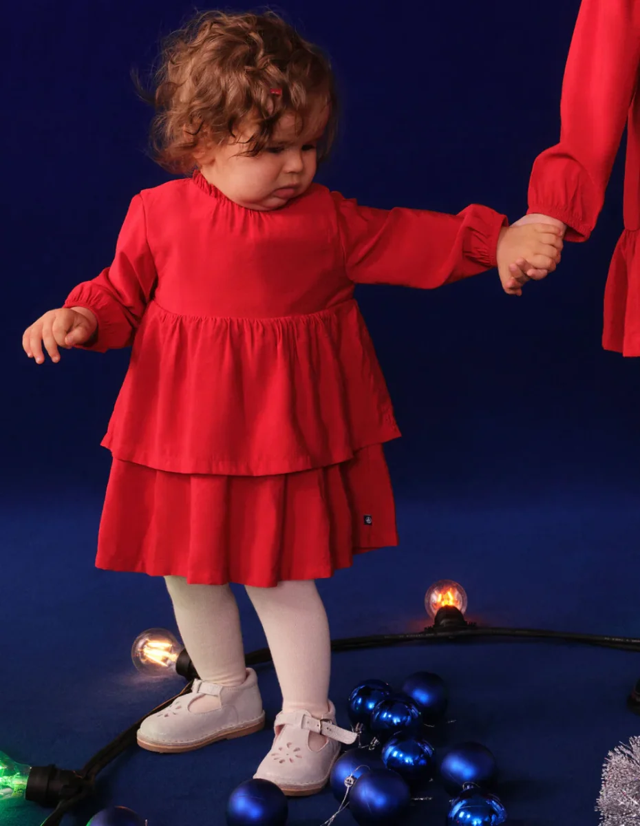 Abito Petit Bateau rosso con balze a maniche lunghe