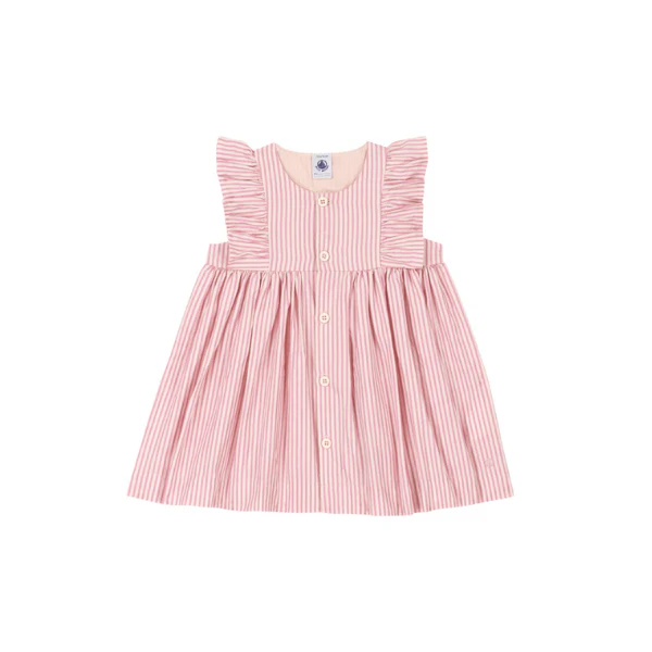 Abito Petit Bateau smanicato con rouches sul giromanica con fantasia a righe e bottoni sul davanti