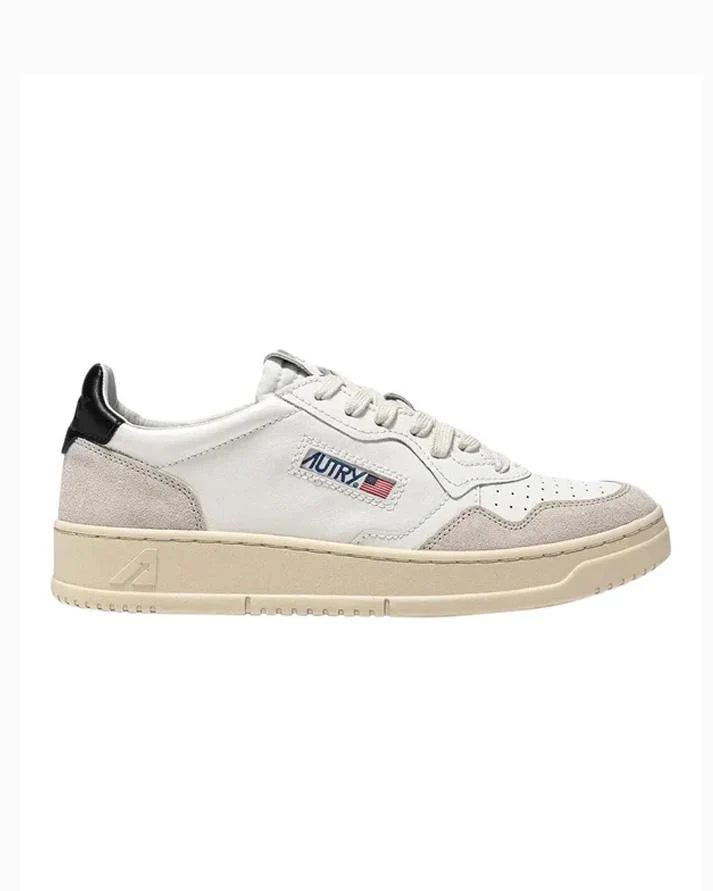 Sneakers bassa ispirata ai modelli vintage anni Ottanta. Tomaia in pelle bianca con impunture a vista che definiscono gli inserti multistrato in suede beige. Punta traforata per favorire la traspirazione. Lacci piatti in cotone. Linguetta in pelle con imbottitura in schiuma e label cucita in tono. Collarino imbottito. Iconico talloncino colore nero sul retro con logo impresso. Fodera in pelle e spugna di cotone. Soletta in pelle logata, rialzata di 2 cm. Suola in gomma logata.Altezza suola: 2.5-3.5 cm. Custodia inclusa.