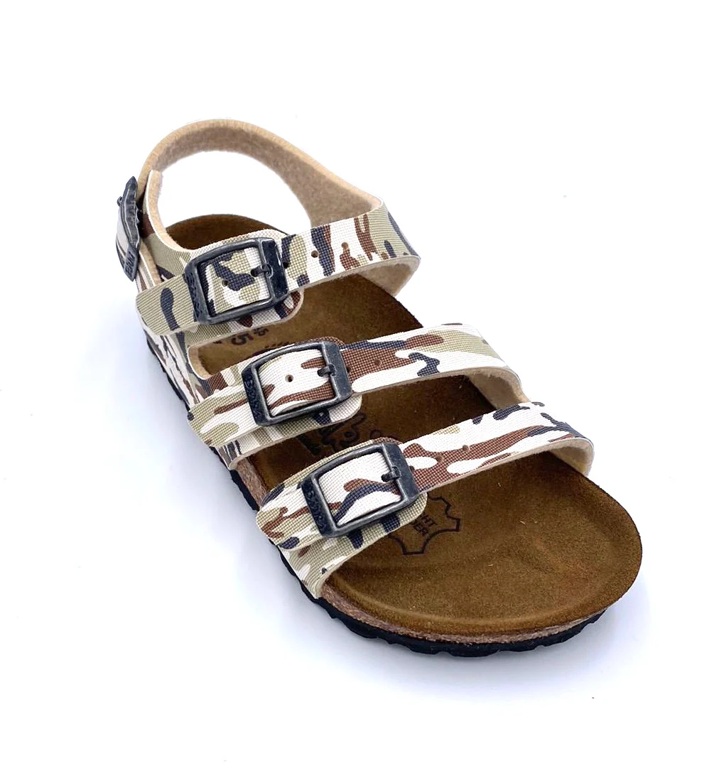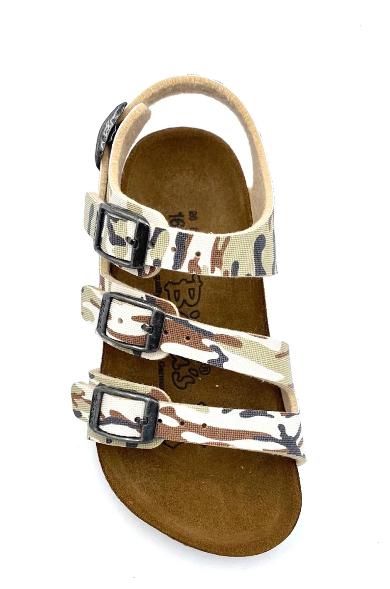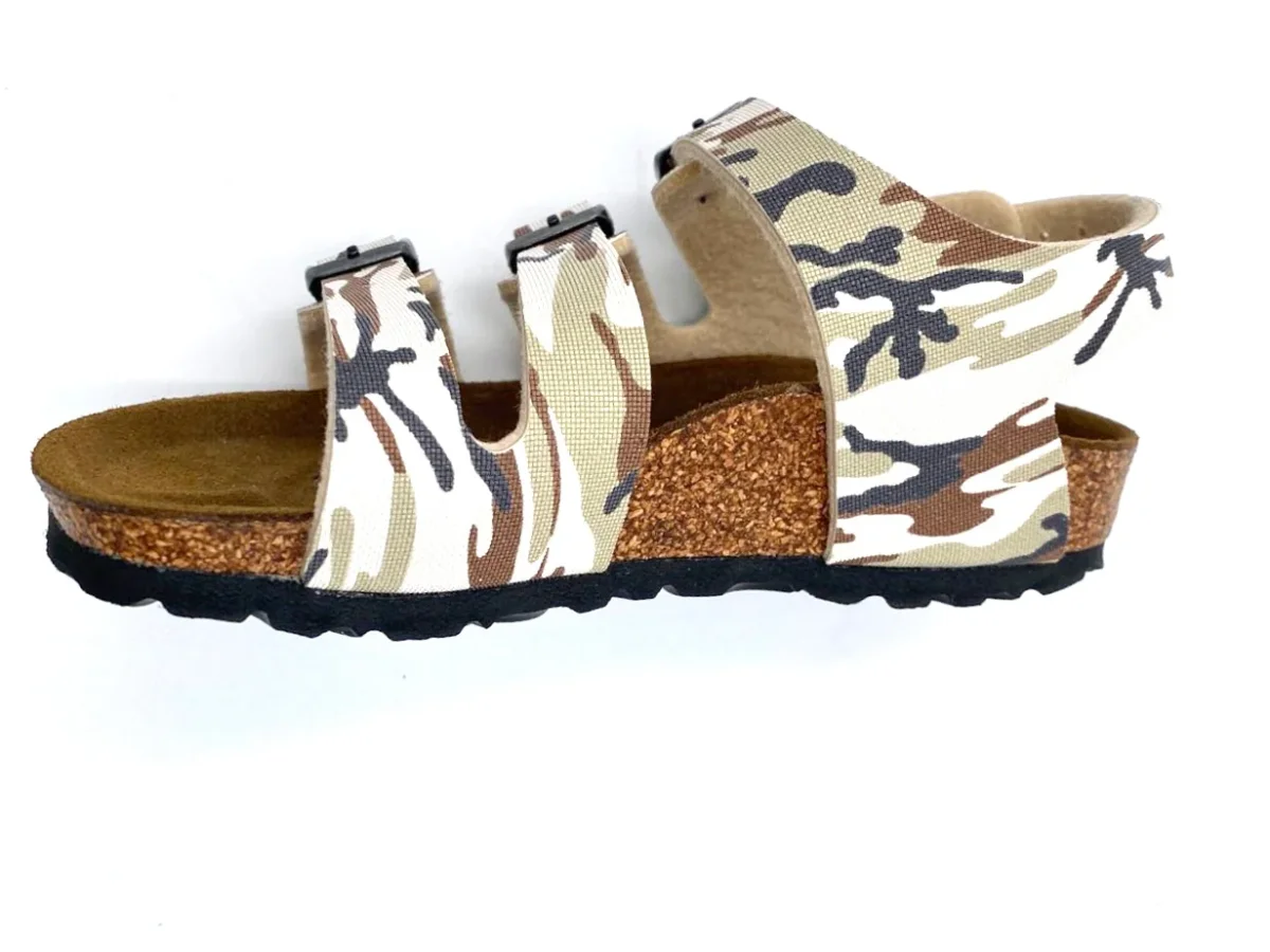 293403 quattro cinturini regolabili, sandalo sandaletto chiuso alla caviglia regolabile birko flor fantasia mimetica mimetico marrone beige