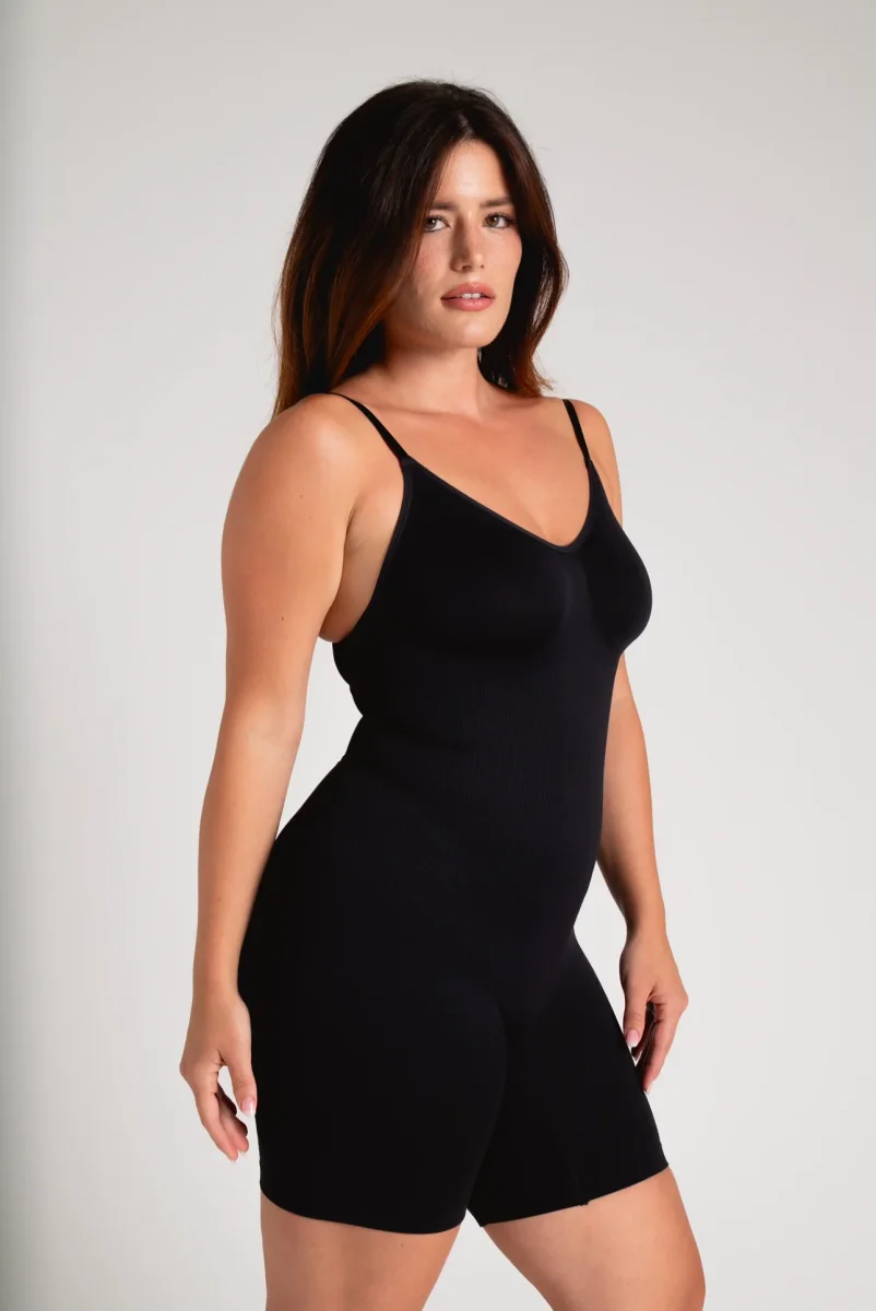 Body con pantaloncino modellante integrato progettato per offrire una vestibilitร ordinata e un supporto uniforme. Realizzato in tessuto elasticizzato e contenitivo, รจ studiato per fornire stabilitร nella zona della vita, dei fianchi e delle cosce, mantenendo al tempo stesso comfort e libertร di movimento.