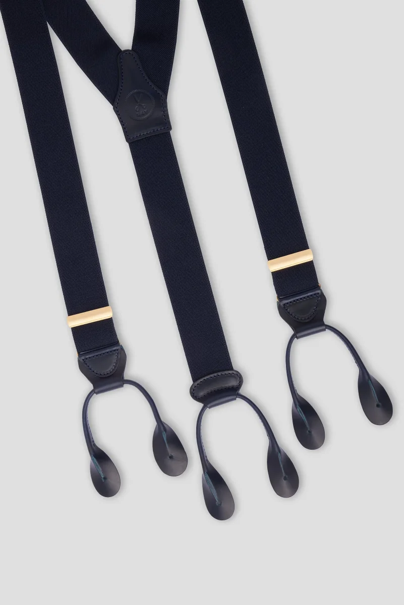 Descrizione: bretelle sartoriali in tessuto elasticizzato, blu, fatte a mano in italia secondo l’antica tradizione artigianale .regolabili attraverso fibbie in metallo studiate per adattarsi ad ogni tipo di corporatura.ciascun dettaglio in cuoio รจ cucito con la massima cura. pregiata fattura .chiusura con bottoni .6 bottoni inclusi nella confezione.Si adattano ad ogni tipo di look,sia formale che casual.