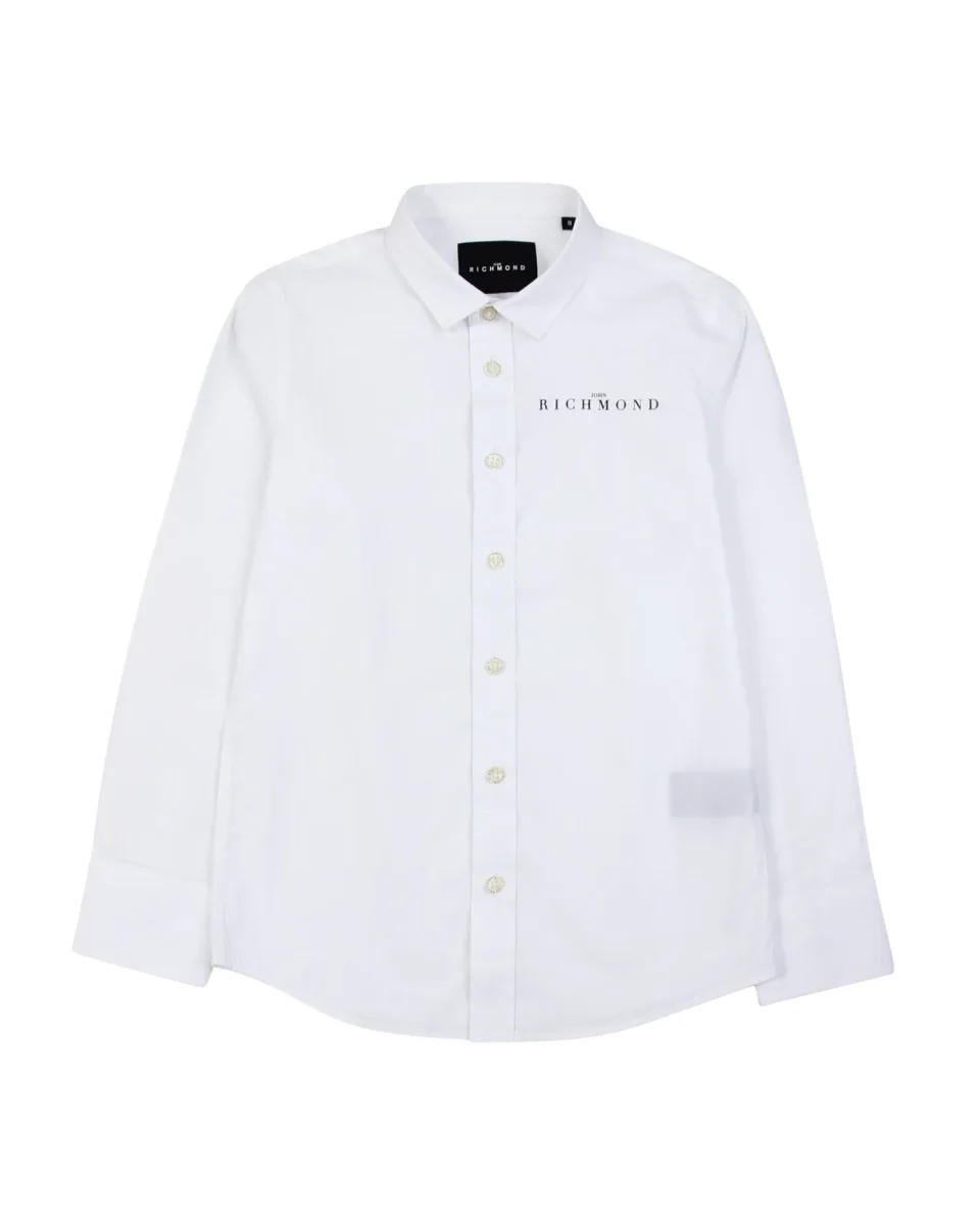 Camicia Richmond bianca con piccola scritta nera sul davanti lato sinistro e scritta sui bottoni Composizione: 100% cotone