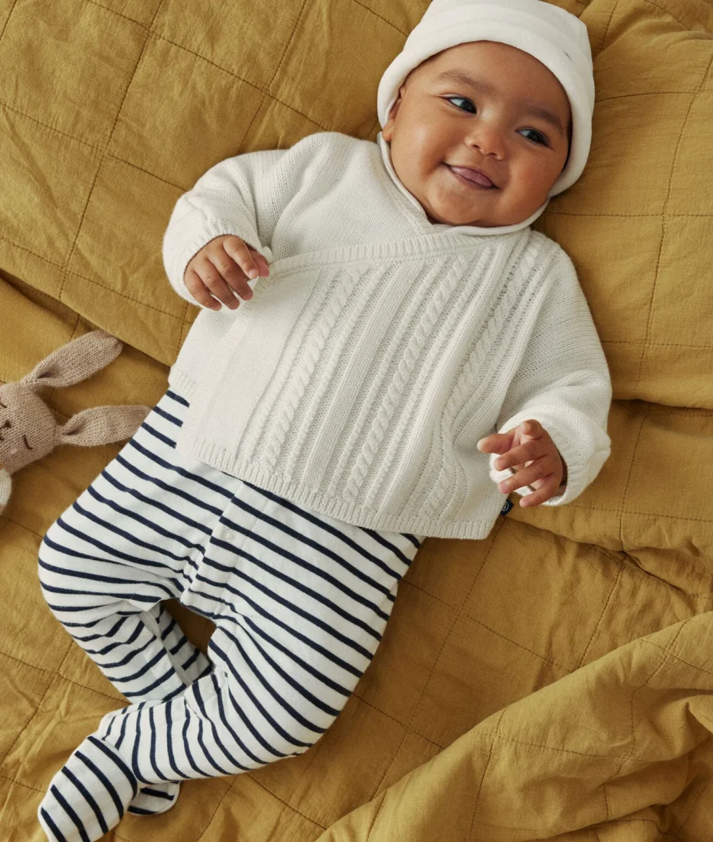 Scalda cuore Petit Bateau panna in maglia lavorata .