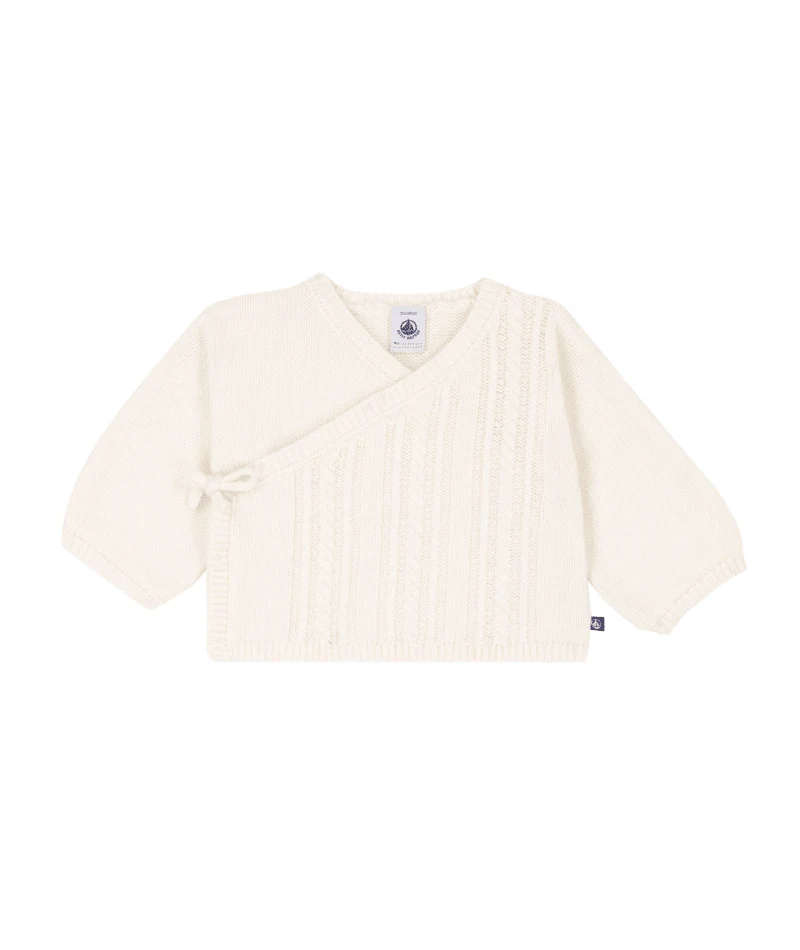 Cardigan in lana e cotone Petit Bateau panna in maglia lavorata