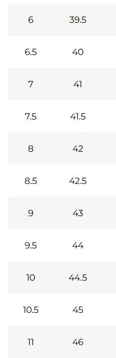 | TAGLIA | 10, 10ยฝ, 11, 11ยฝ, 12, 12ยฝ, 13, 13ยฝ, 14, 15, 3, 3ยฝ, 4, 4ยฝ, 5, 5ยฝ, 6, 6ยฝ, 7, 7ยฝ, 8, 8ยฝ, 9, 9ยฝ |