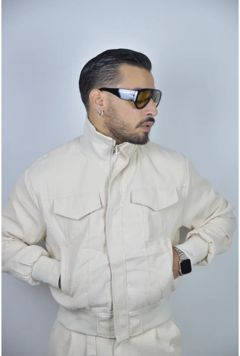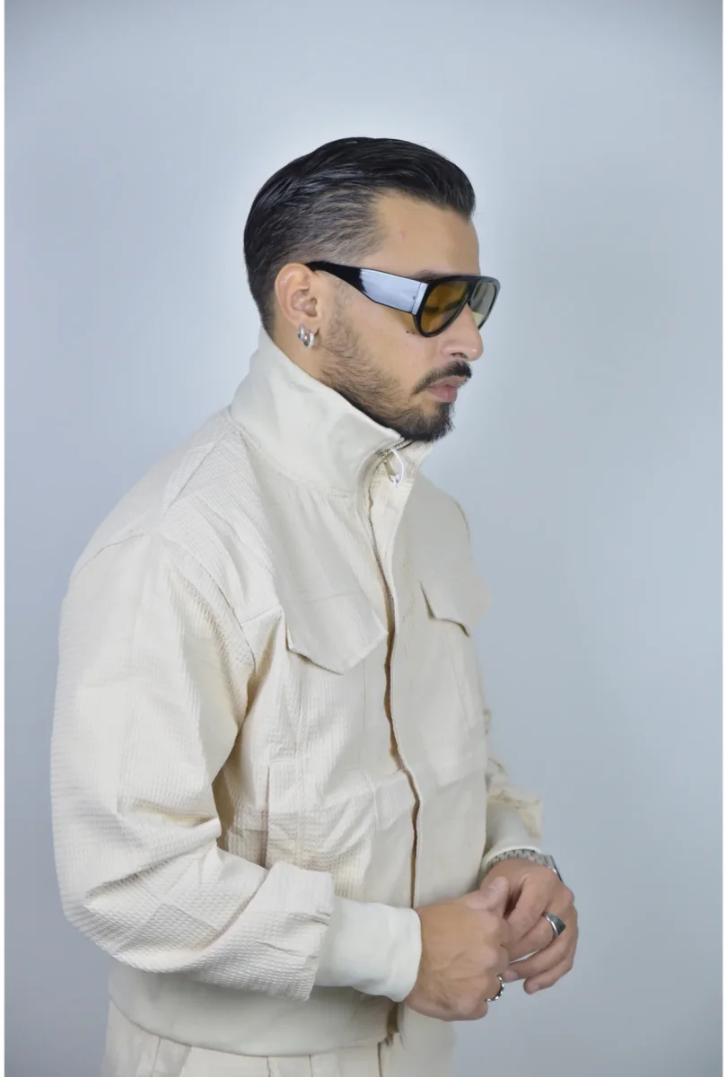 Vestibilità semi over Guida alle taglie : S-44 M-46 L-48 XL-50 XXL-52 Il modello in foto indossa una taglia M ed è 1.76 x 78Kg