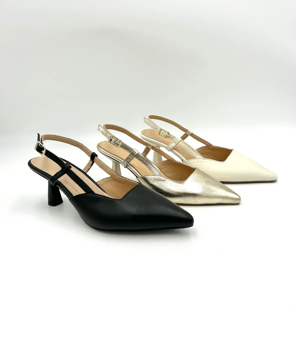 décolleté slingback, scarpe eleganti donna, tacco comodo 6 cm, scarpe cerimonia pelle, slingback tacco a rocchetto, scarpe eleganti in vera pelle, décolleté oro nero crema bianco, moda scarpe 2025, battesimo, comunione, cresima, matrimonio, anniversario, compleanno, diciottesimo, anniversario. black nero nera bianco bianca, oro gold.