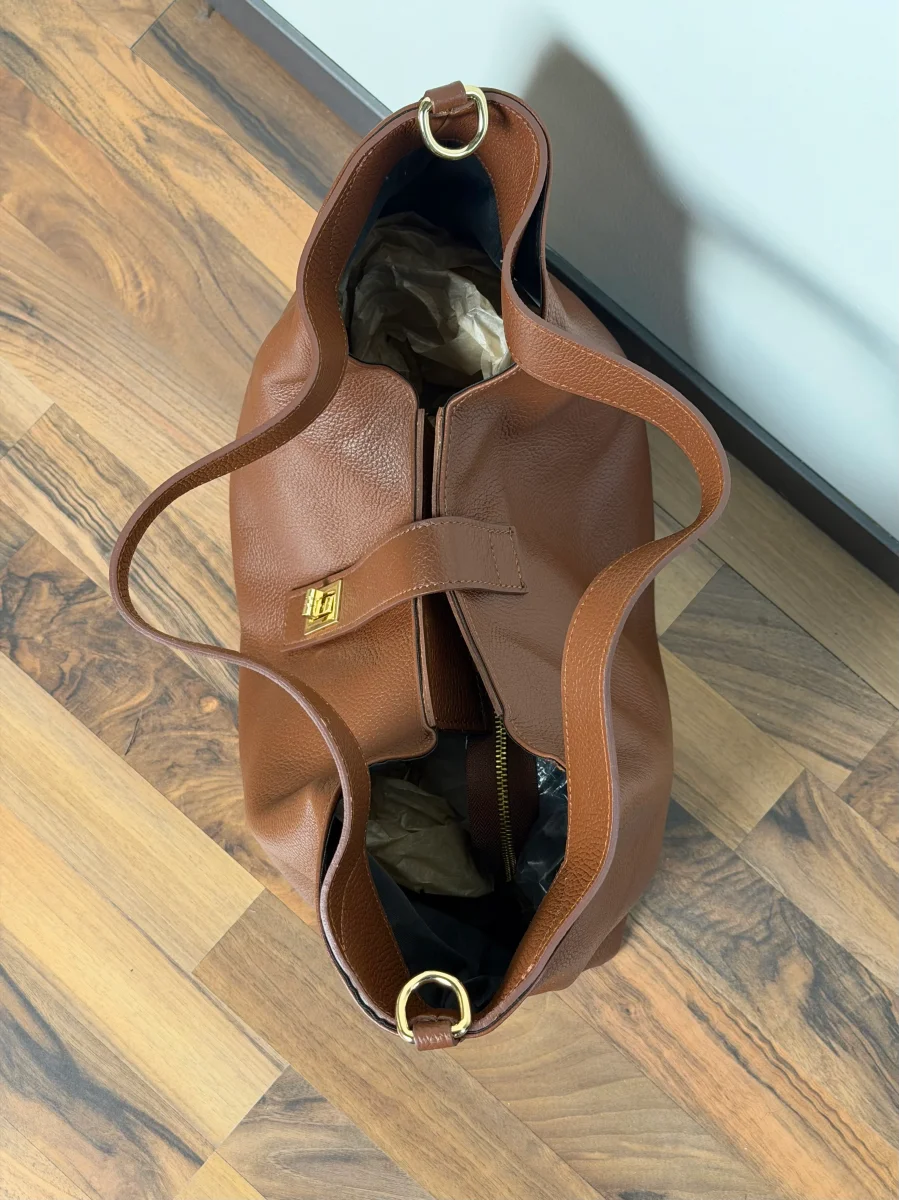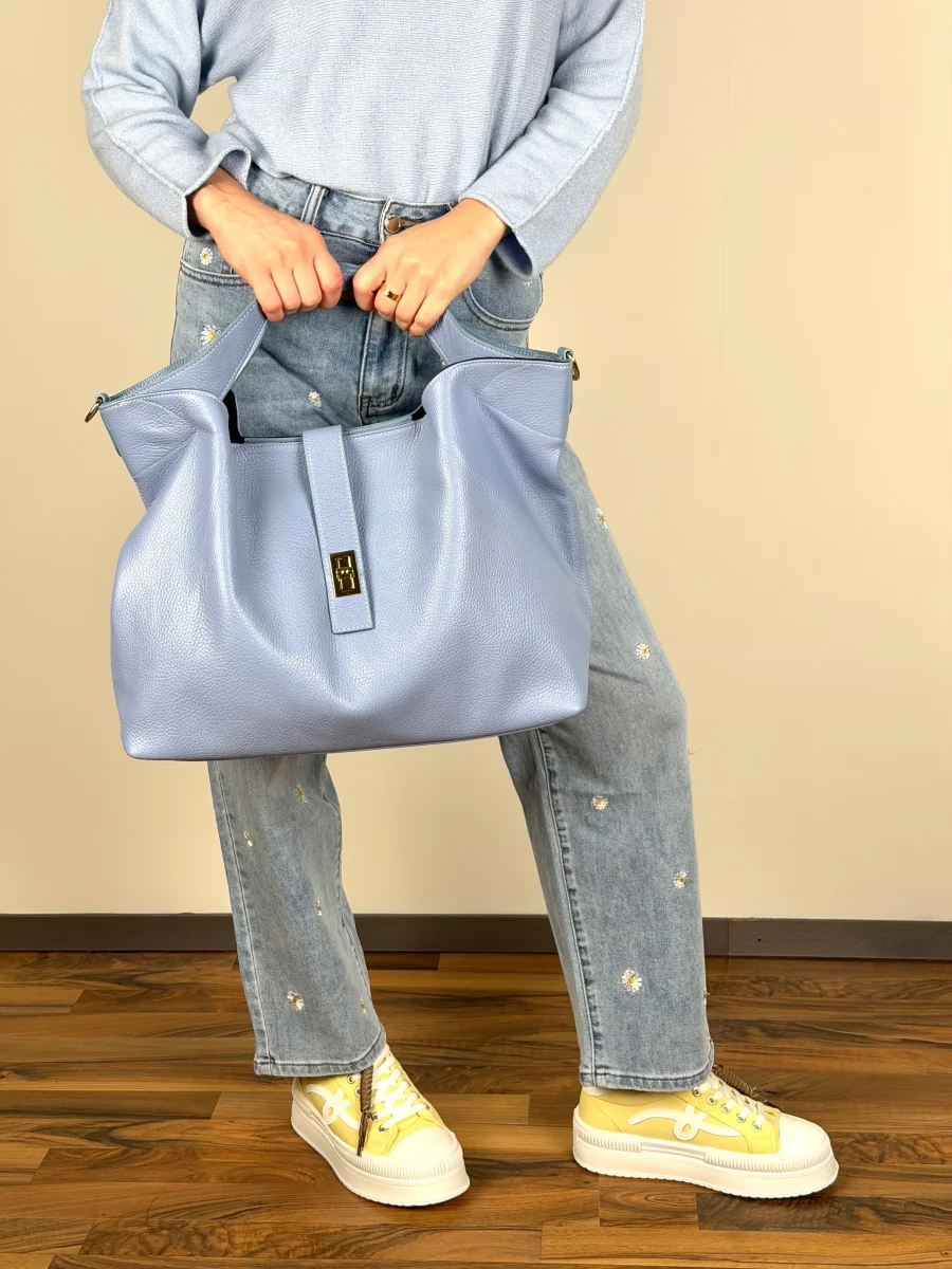 Borsa da donna in vera pelle , made in italy di produzione artigianale.. Chiusura a clucth e zip, unico scompartimento MISURE: larghezza 47 cm , altezza 30 cm. Dotata di sacca dustbag antipolvere.