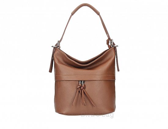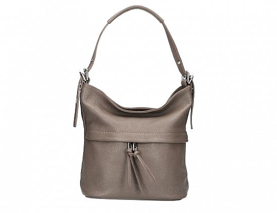Borsa a spalla in Vera Pelle Chiusura con Zip Accessori color Nickel Scomparto unico Tasca interna con zip Tasca portacellulare Tasche esterne con zip Fodera in poliestere Dimensioni: 25cm x 27cm x 13,5cm (base x altezza x profonditร ) Peso: 0.6 Kg