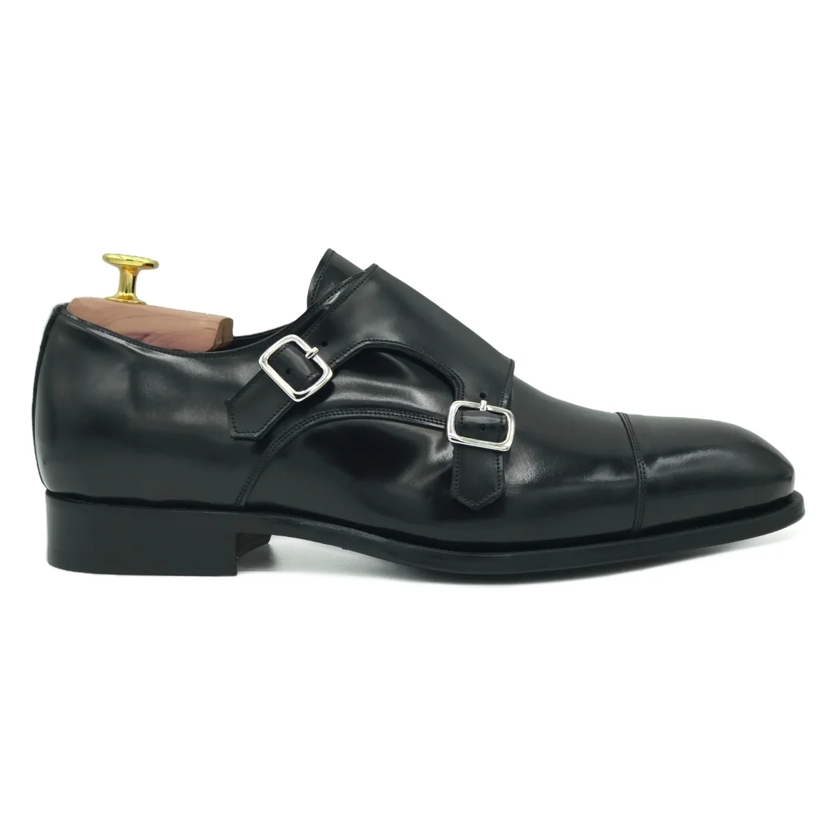 Doppia fibbia in pelle nero, Scarpe sofisticate ed eleganti in morbida pelle di vitello spazzolata, si adattano al tuo stile in ogni occasione. Perfette per nelle occasioni formali o o per andare in ufficio.