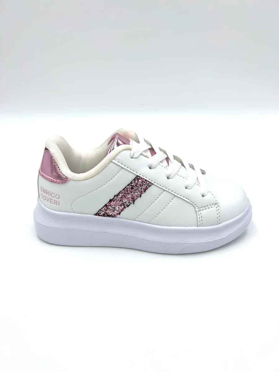 Enrico coveri kids Sneakers bianca – glitter rosa e oro leopardato