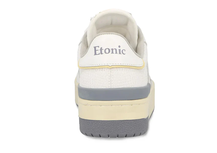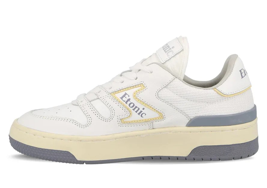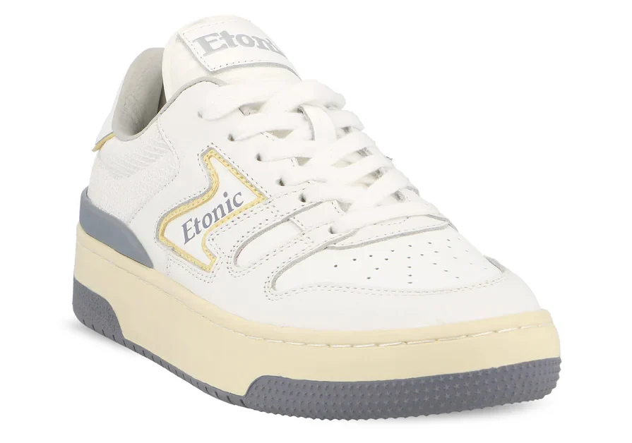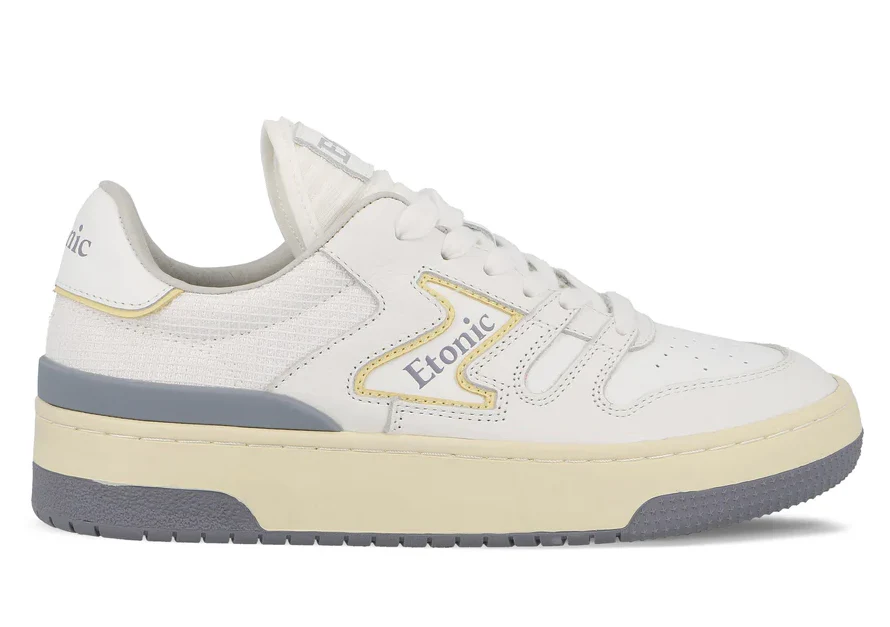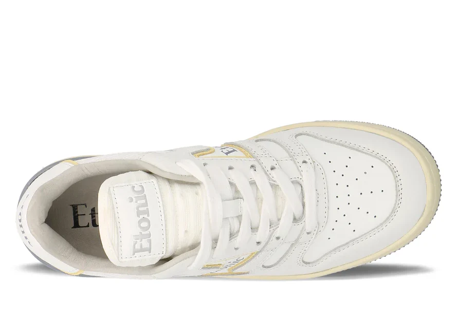 Etonic Sneakers B481 in pelle bianca, mesh bianco, dettaggli gialli, beige e grigio fumo