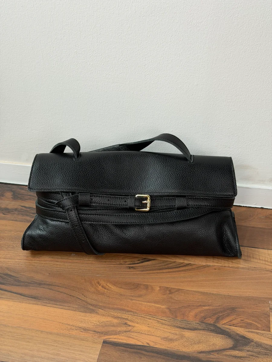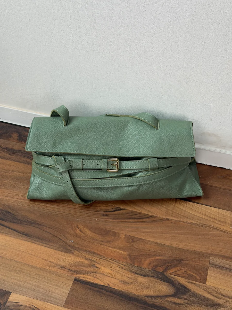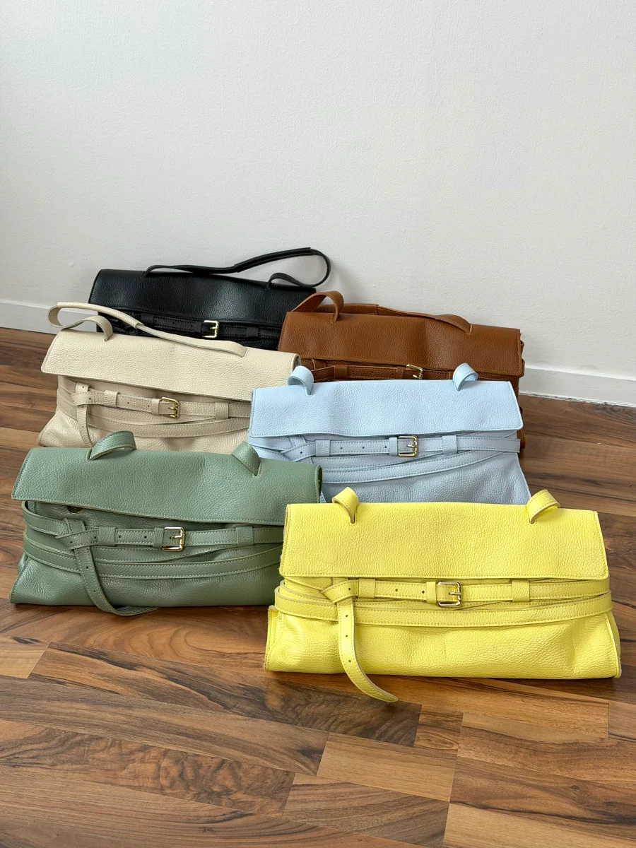 Borsa da donna in vera pelle , made in italy di produzione artigianale.. Chiusura a bottone , unico scompartimento MISURE: larghezza 34 cm , altezza 25 cm. Dotata di sacca dustbag antipolvere.