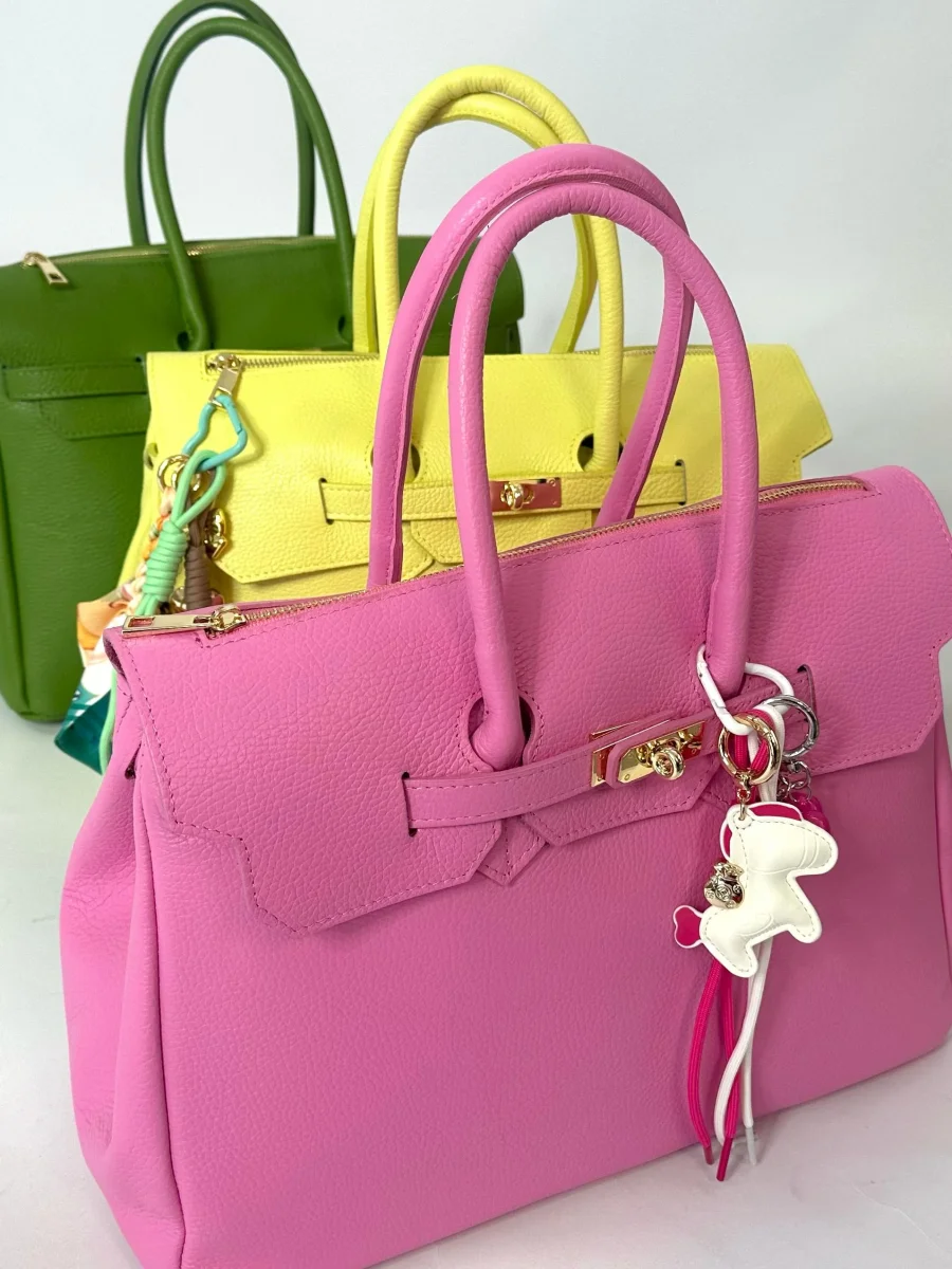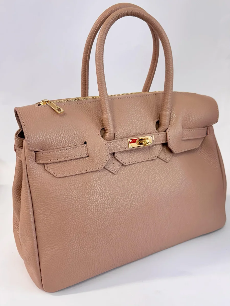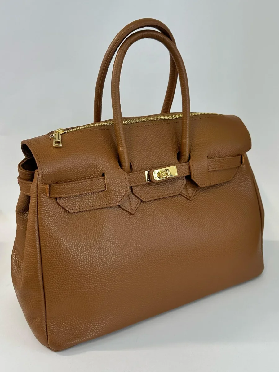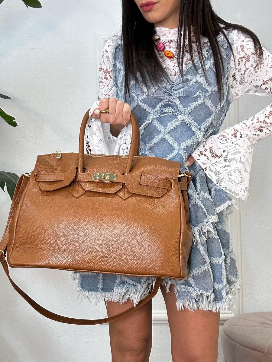 Borsa da donna in vera pelle, cuoio martellato made in italy di produzione artigianale. Dotata di doppi manici e tracolla in pelle regolabile. Chiusura con zip centrale. Tascona interna con zip. Divisorio in 3 scomparti. MISURE: base 38cm , altezza 38 cm ,profonditร 16 cm. Dotata di sacca dustbag antipolvere