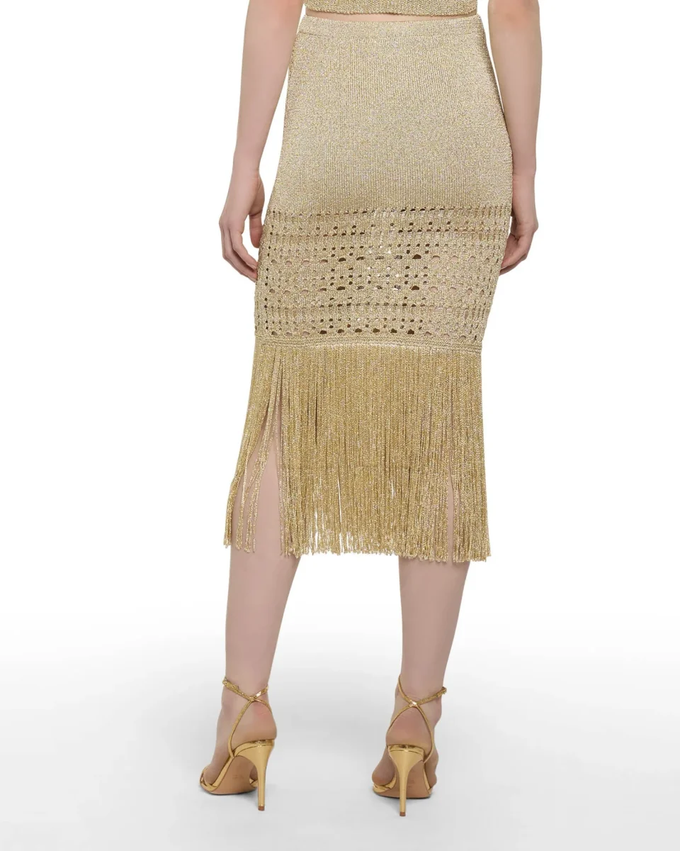 – Design: Gonna a tubino con frange sul fondo