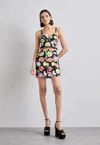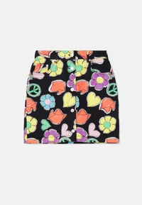 Gonna in Denim con chiusura bottoni, tasche laterali, tasche posteriori in fantasia .