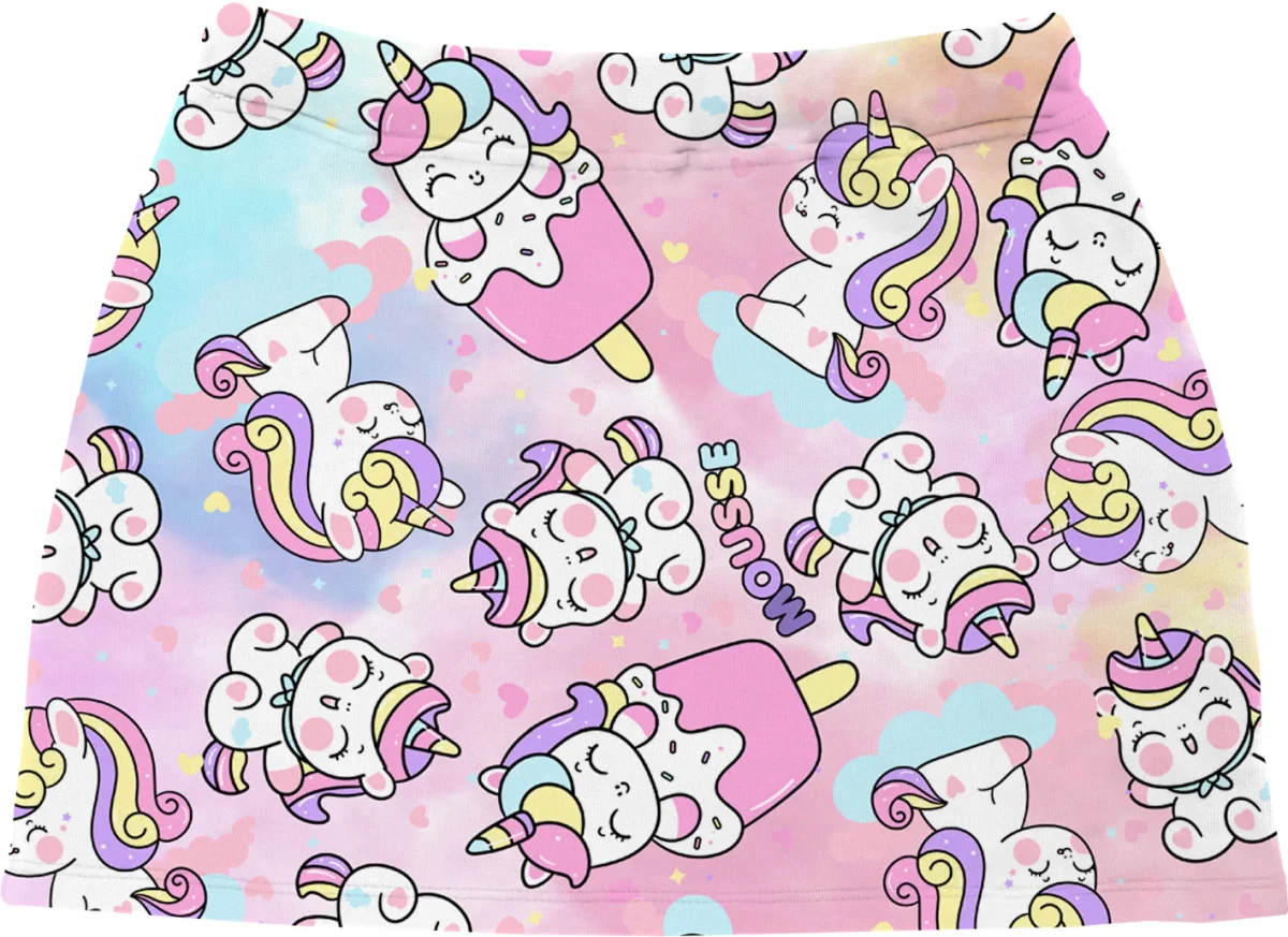 Gonna Mousse in felpa con elastico in vita con fantasia unicorni e gelati e scritte “Mousse” Composizione: 100%v cotone