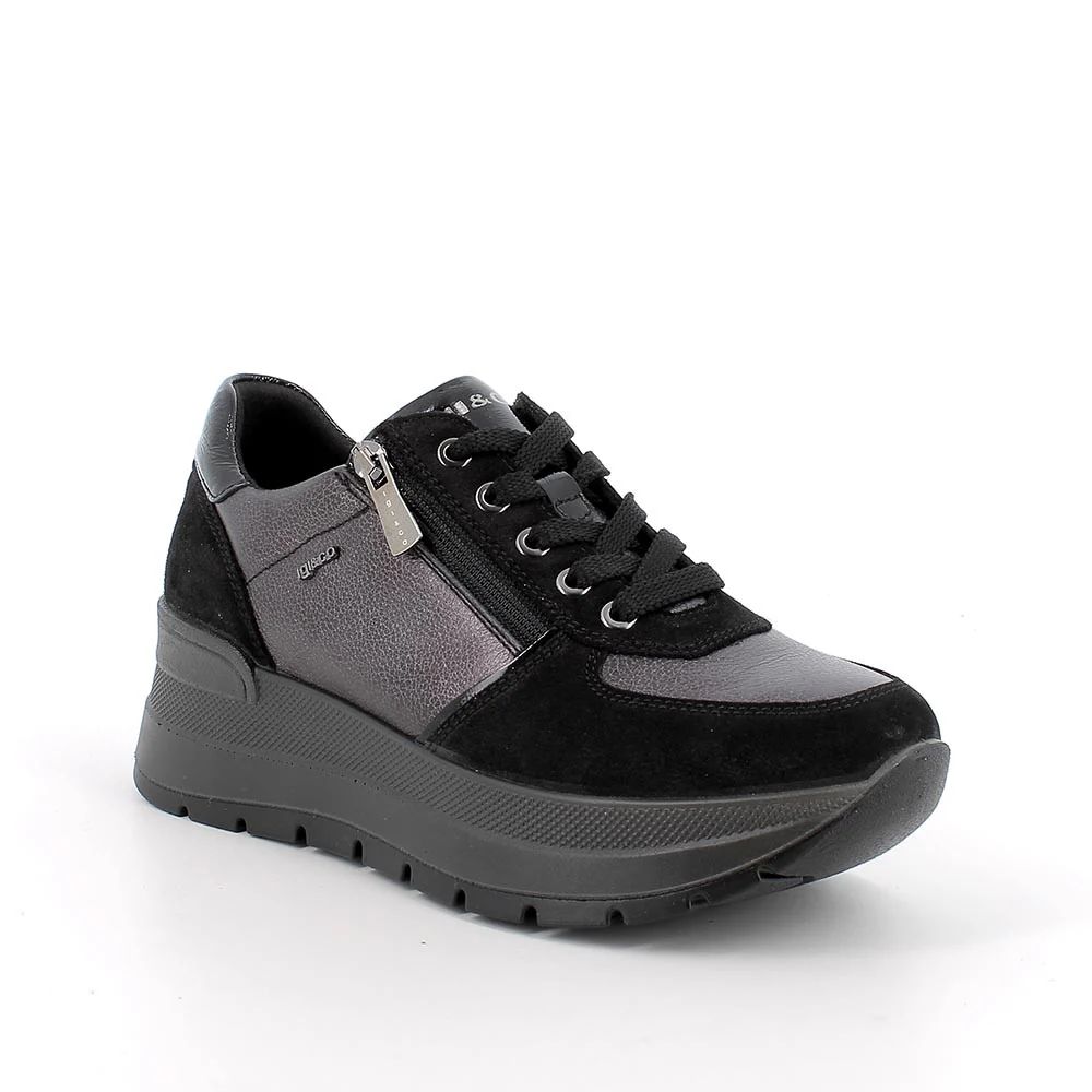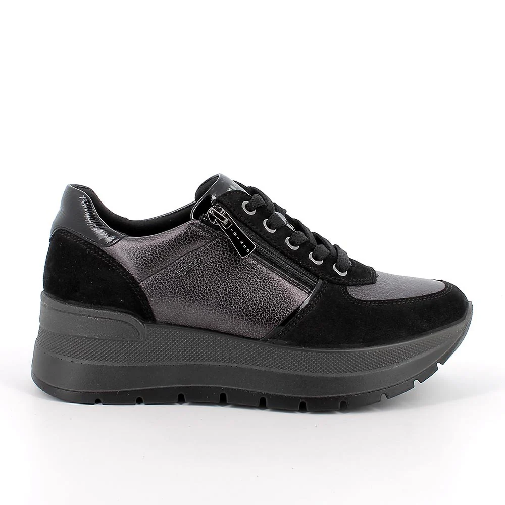 Igi&Co 8677500 Sneakers con zeppa da donna grigio e nero con zip
