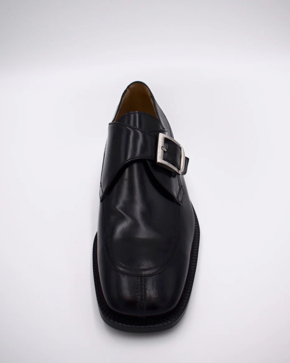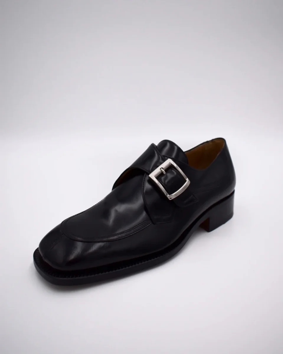 Mocassino nero con fibbia Lancio: stile sofisticato e lavorazione Blake cucita