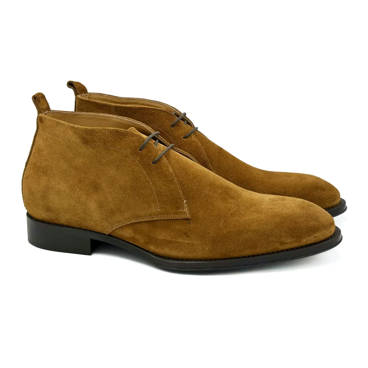 Polacchine in pelle scamosciata marrone tabacco. Le scarpe ideali da indossare nella stagione piรน fredda. Completano il tuo look sia nelle occasioni formali che durante una passeggiata in centro. La comoda suola in gomma Vibram ti accompagnerร ad ogni passo.