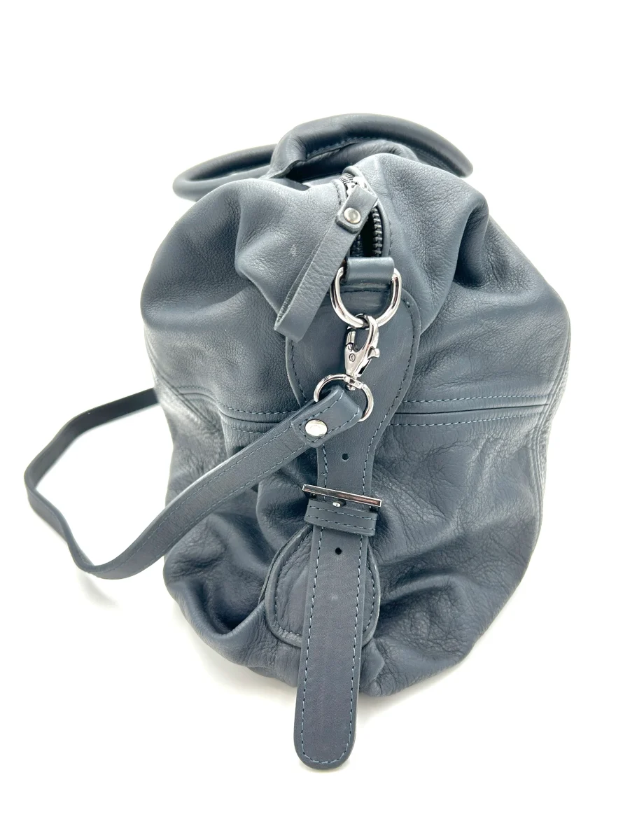 Made in italy Borsone viaggio regolabile con manici e tracolla – vera pelle – blu