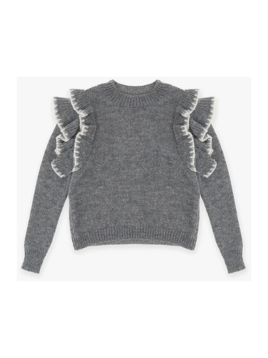 Maglione Dixie girocollo grigio con rouches sul giromanica
