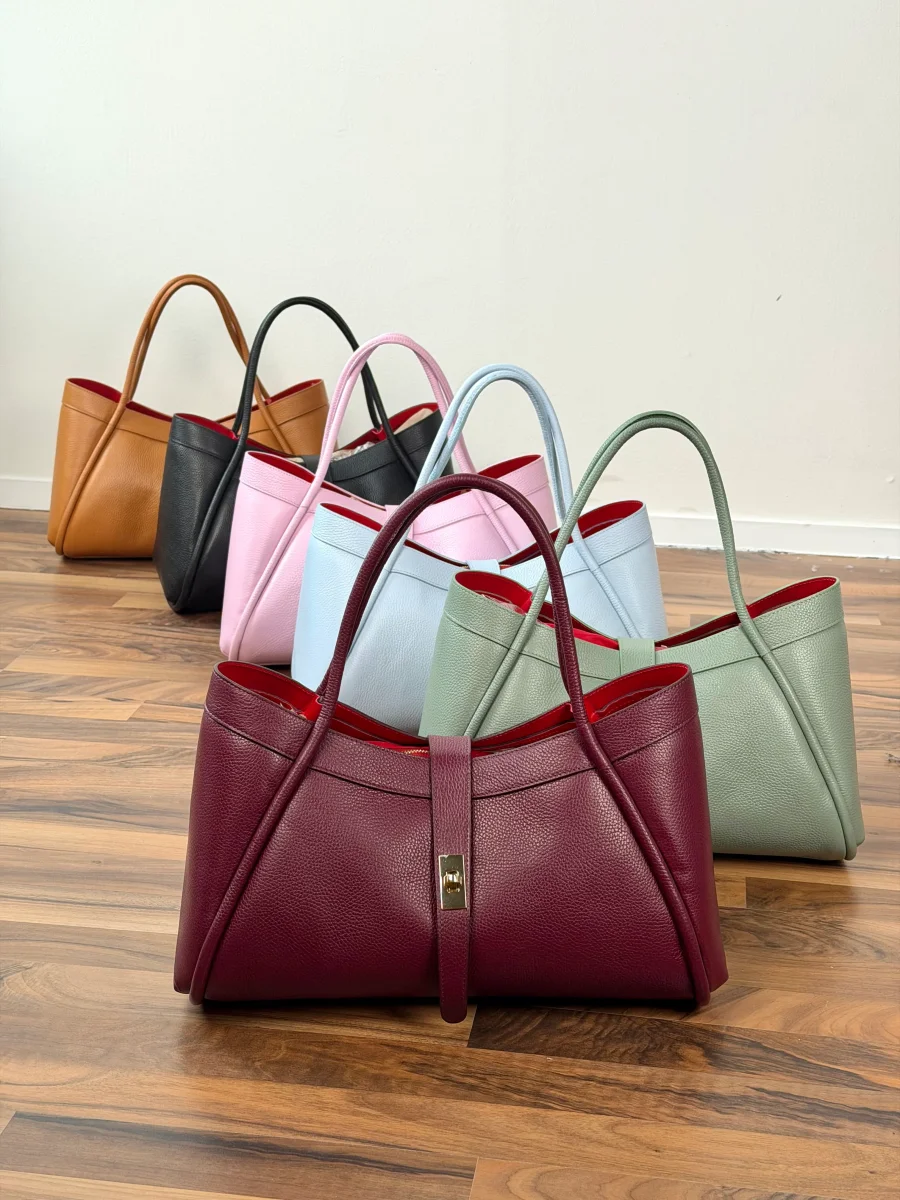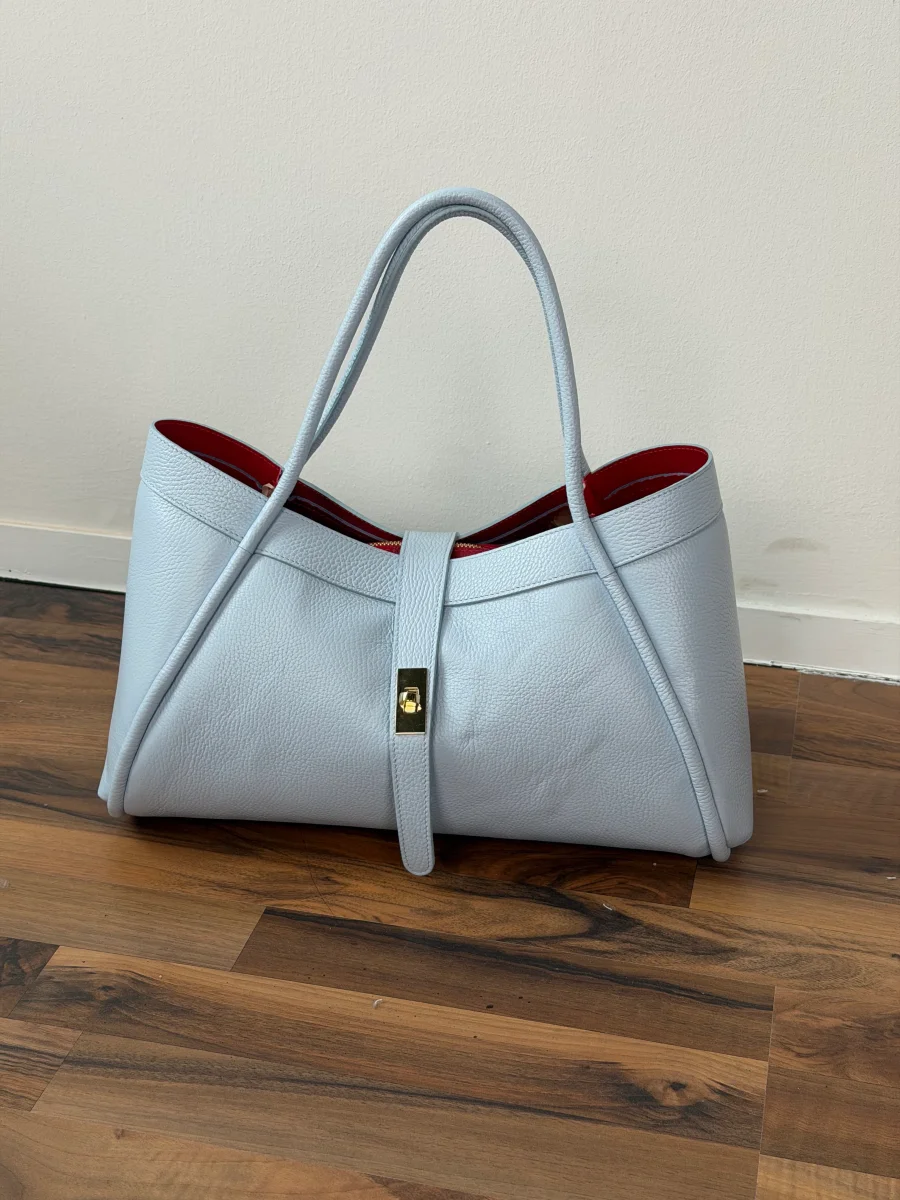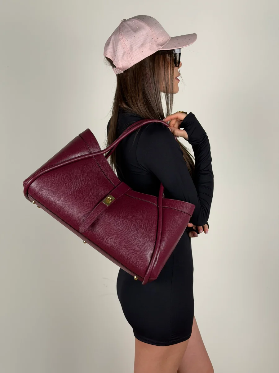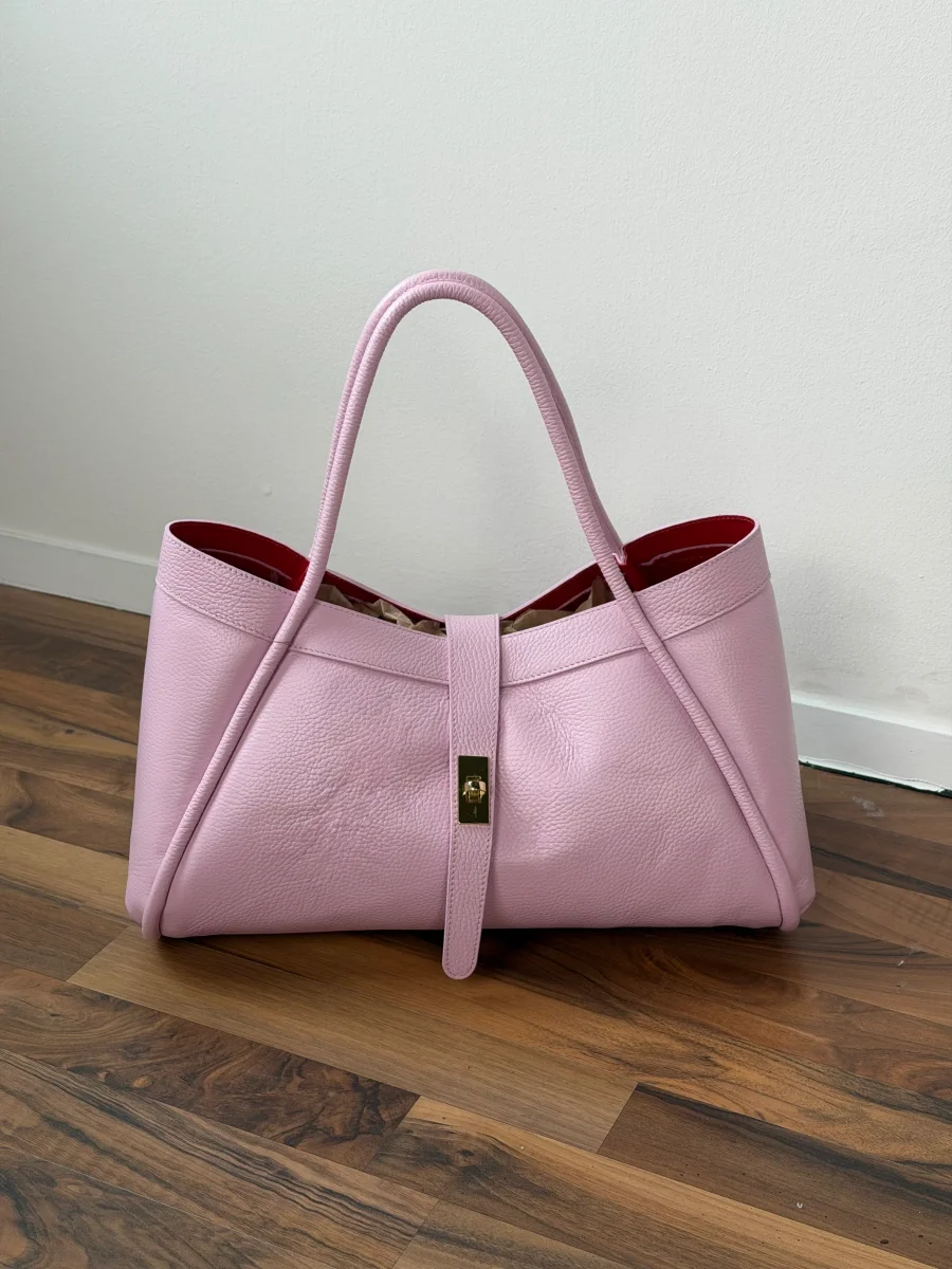 Borsa da donna in vera pelle , made in italy di produzione artigianale.. Chiusura a bottone , 3 scompartimento MISURE: larghezza 40 cm , altezza 23 cm, profonditร 20 cm. Dotata di sacca dustbag antipolvere.