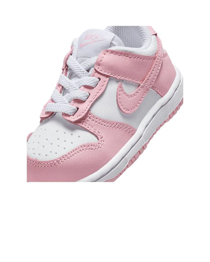 Migliora lo stile sneaker del tuo bambino con le Nike Dunk Low TD, una silhouette iconica nata sui campi da basket e diventata rapidamente un must dello streetwear. Originariamente create negli anni ’80, le Dunk Low incarnano lo spirito ribelle della cultura skate e degli appassionati di sneaker. Questa versione per neonati/bambini piccoli in White/Med Soft Pink mantiene tutte le vibrazioni classiche con un’imbottitura morbida alla caviglia per il massimo comfort e una suola in gomma resistente per una trazione affidabile durante le avventure di gioco. Realizzate per durare con pelle vera e sintetica, queste scarpe uniscono uno stile heritage a una durabilitร moderna per il look quotidiano del tuo piccolo.- Mix resistente di pelle vera e sintetica per una lunga durata- Imbottitura morbida alla caviglia per comfort tutto il giorno- Punta traforata e design classico di collo/language per uno stile Dunk autentico- Suola cupsole in gomma a tutta lunghezza con motivo di trazione ispirato all’originale- Lacci classici per una calzata sicura- Colore: White/Med Soft Pink–morbido ma deciso per un fresco stile streetwear
