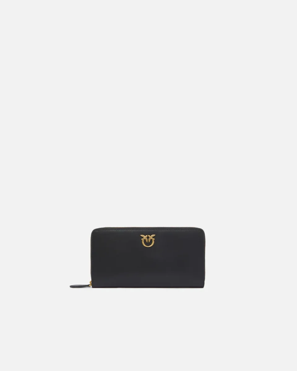 Portafoglio zip-around in morbida pelle mano seta, personalizzato con placchetta Love Birds Diamond Cut su base in pelle. L’interno è foderato in polycotton ed è diviso in quattro scomparti, di cui uno chiuso con zip e due con spazi per carte di credito.