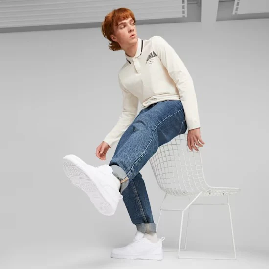 Ispirata al basket, la Rebound Low รจ tornata per cambiare le regole del gioco. La scarpa V6 offre una linea bassa per l’uso quotidiano dentro e fuori dal campo, una tomaia in morbida pelle bottalata e il marchio PUMA con contrasto cromatico per un effetto a impatto.