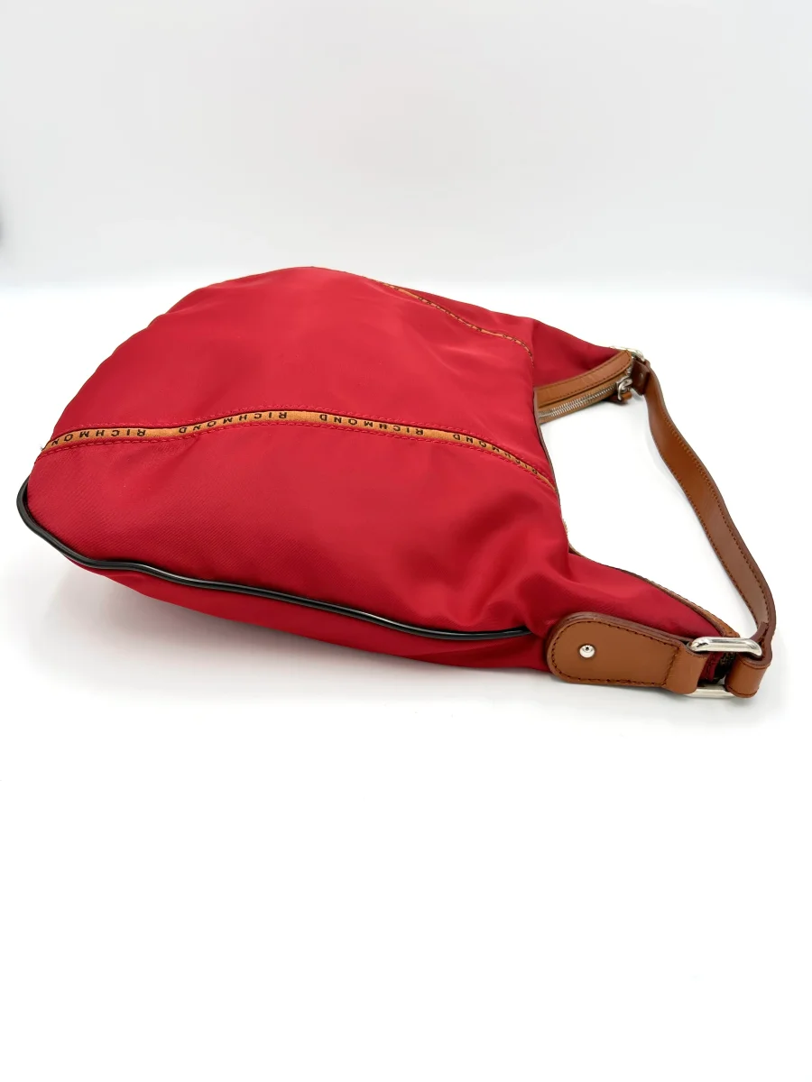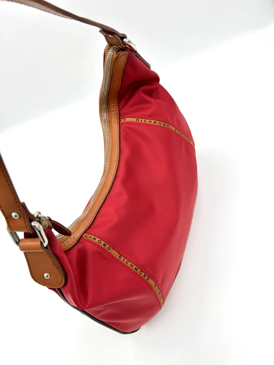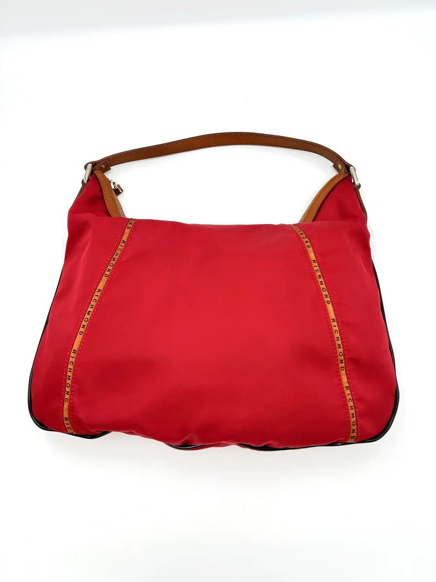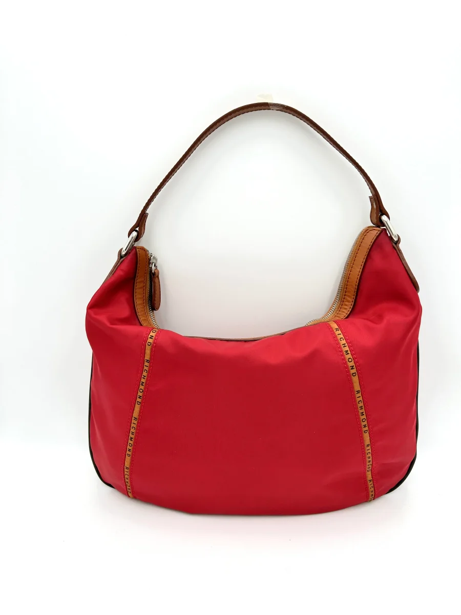 Richmond Borsa da spalla grande Nylon e vera pelle – rosso