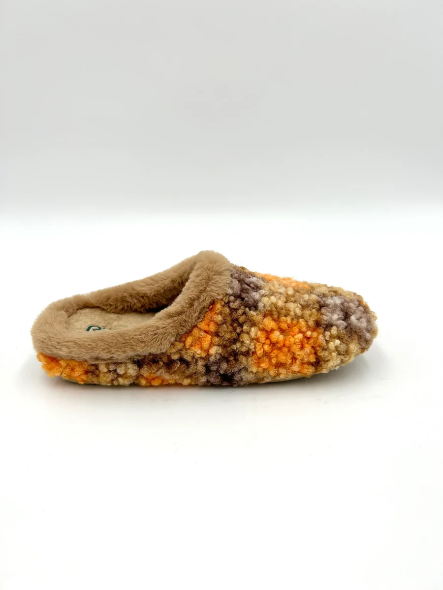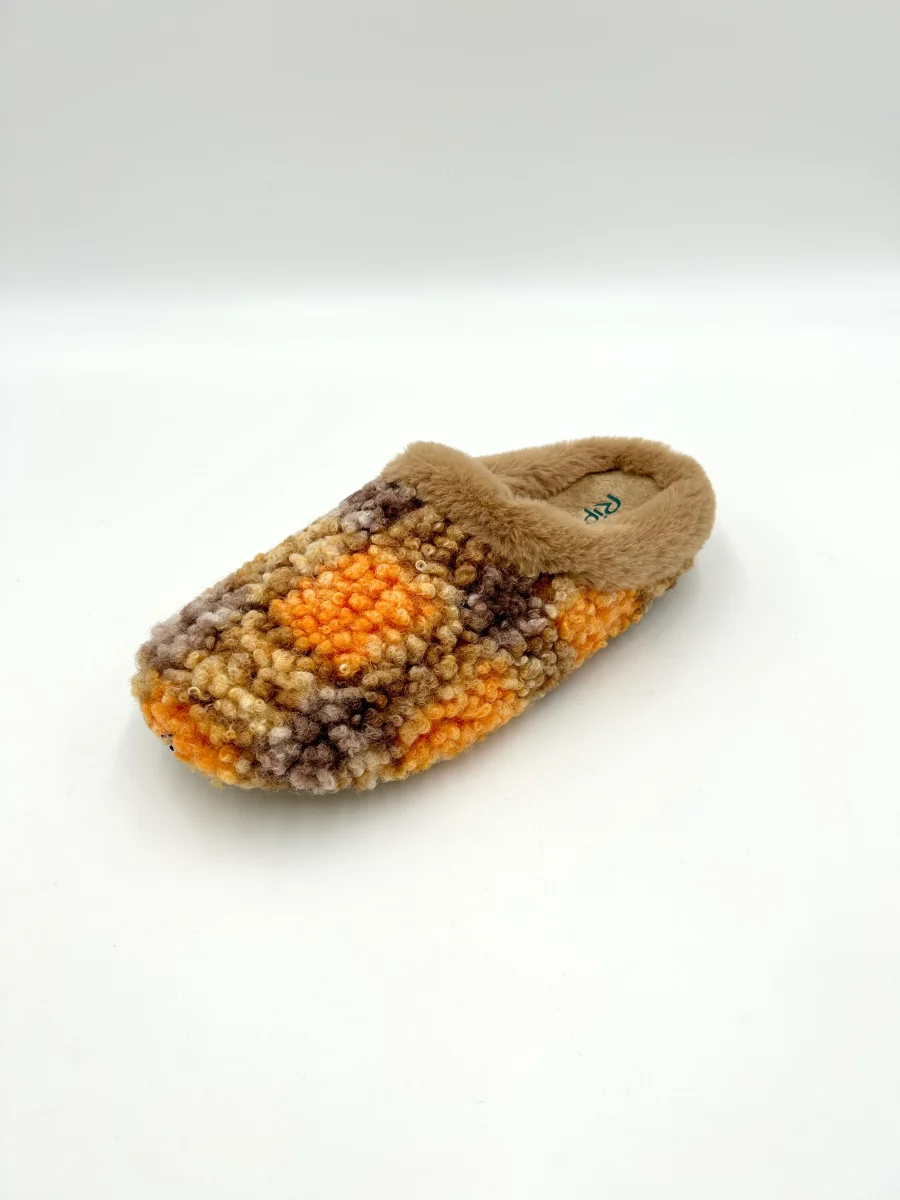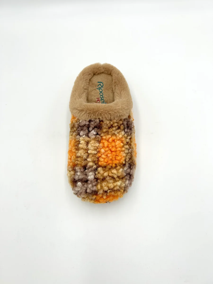 Riposella Pantofola ciabatta calda fantasia scozzese – marrone e arancione