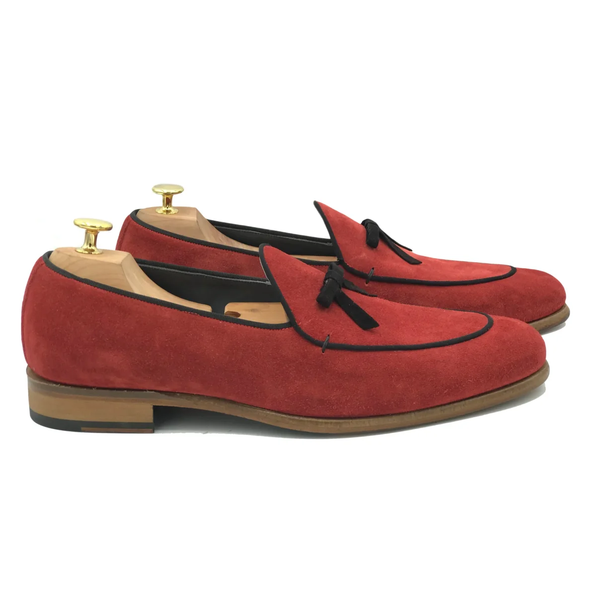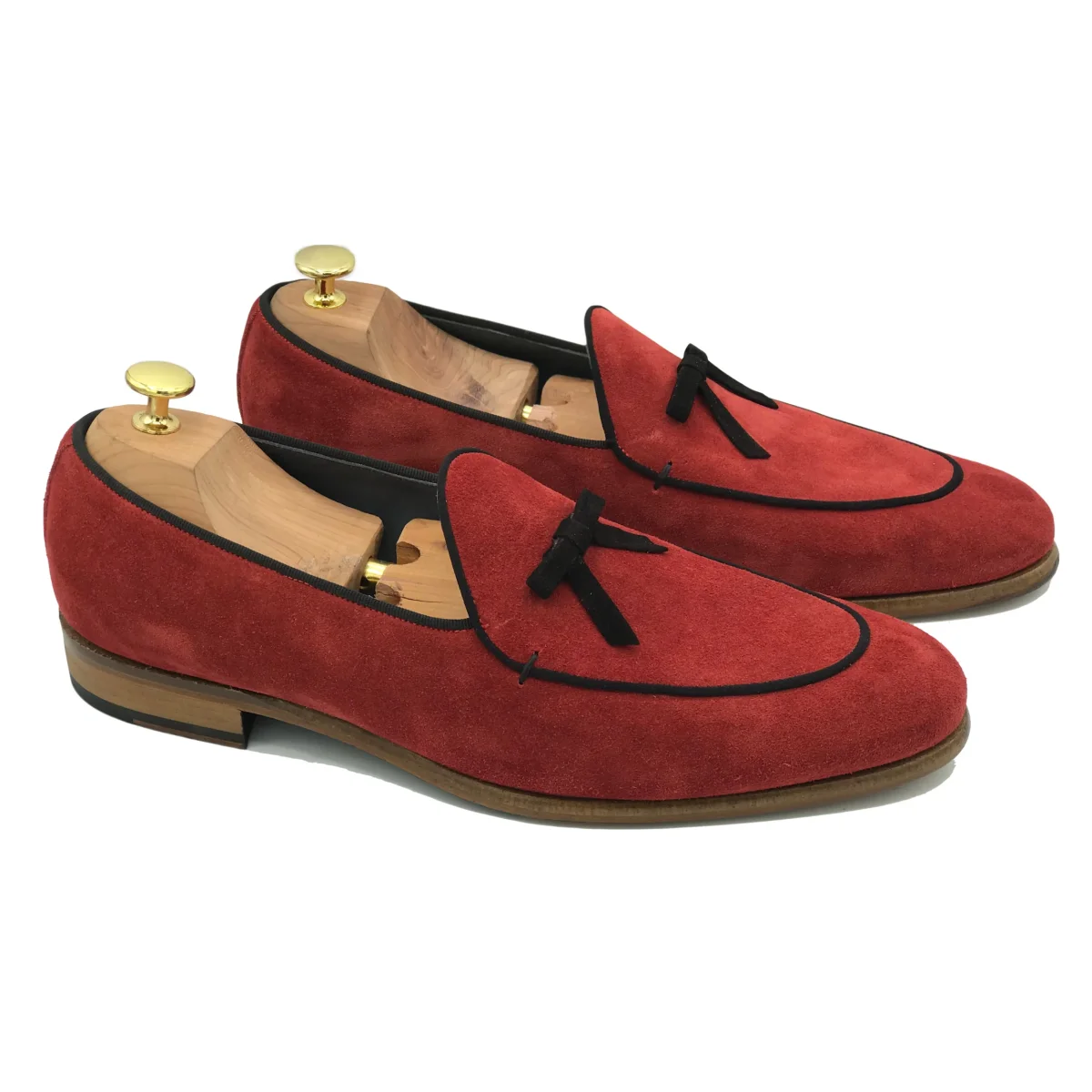 Belgian loafers in pelle scamosciata rosso, ecco una delle varianti di loafers piรน particolari del momento! In questa colorazione unica, con suola in cuoio e in pelle scamosciata, lasciano libero il collo del piede. Un scelta comoda e versatile per le sere d’estate.