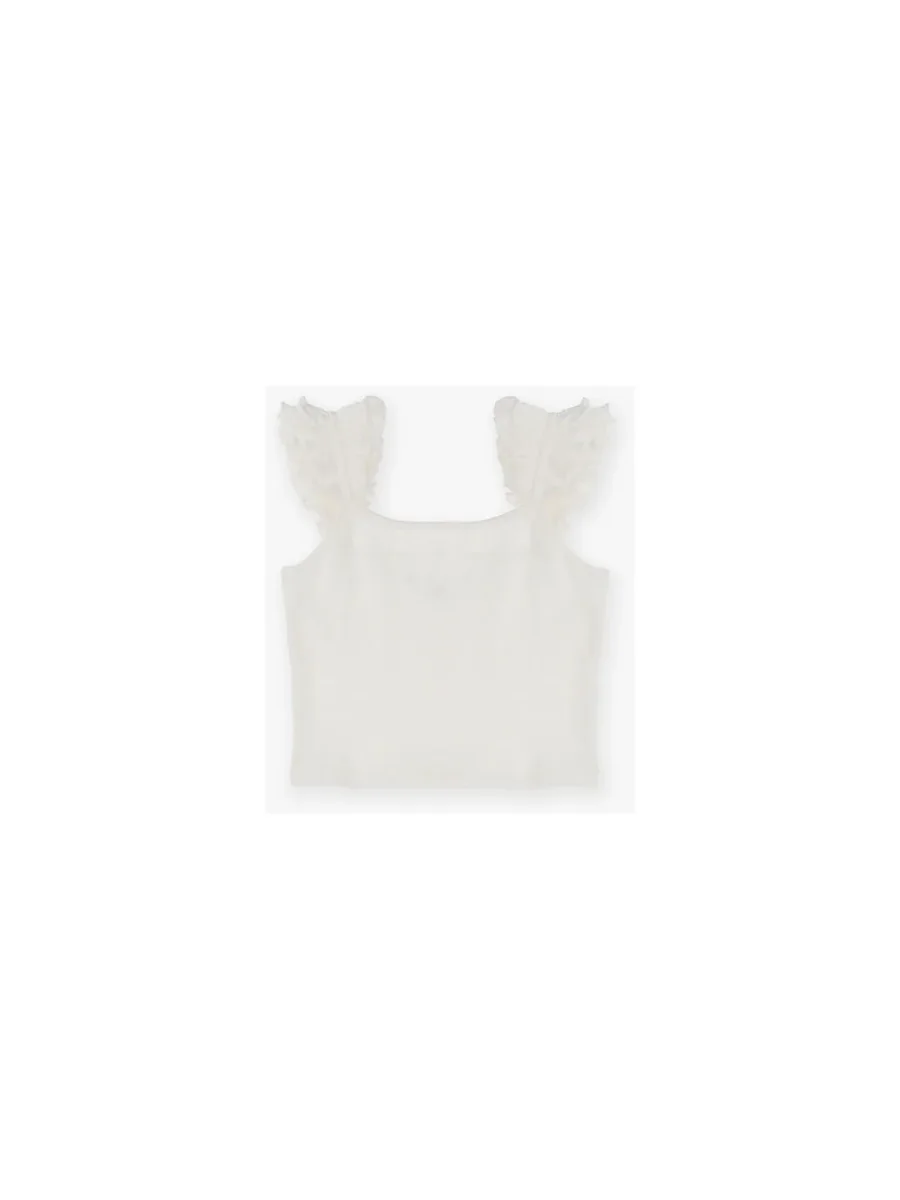 Top Dixie a costine smanicato con rouches sul giromanica di colore bianco