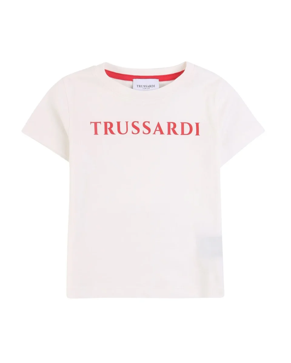Tshirt Trussardi girocollo a mezza manica di colore bianco con scritta rossa sul davanti Composizione: 100% cotone