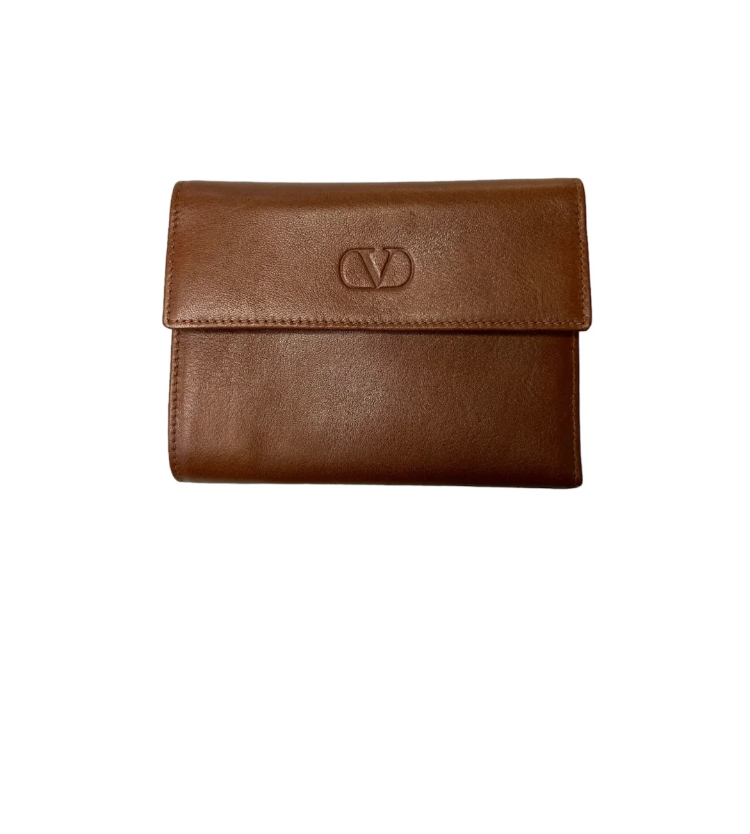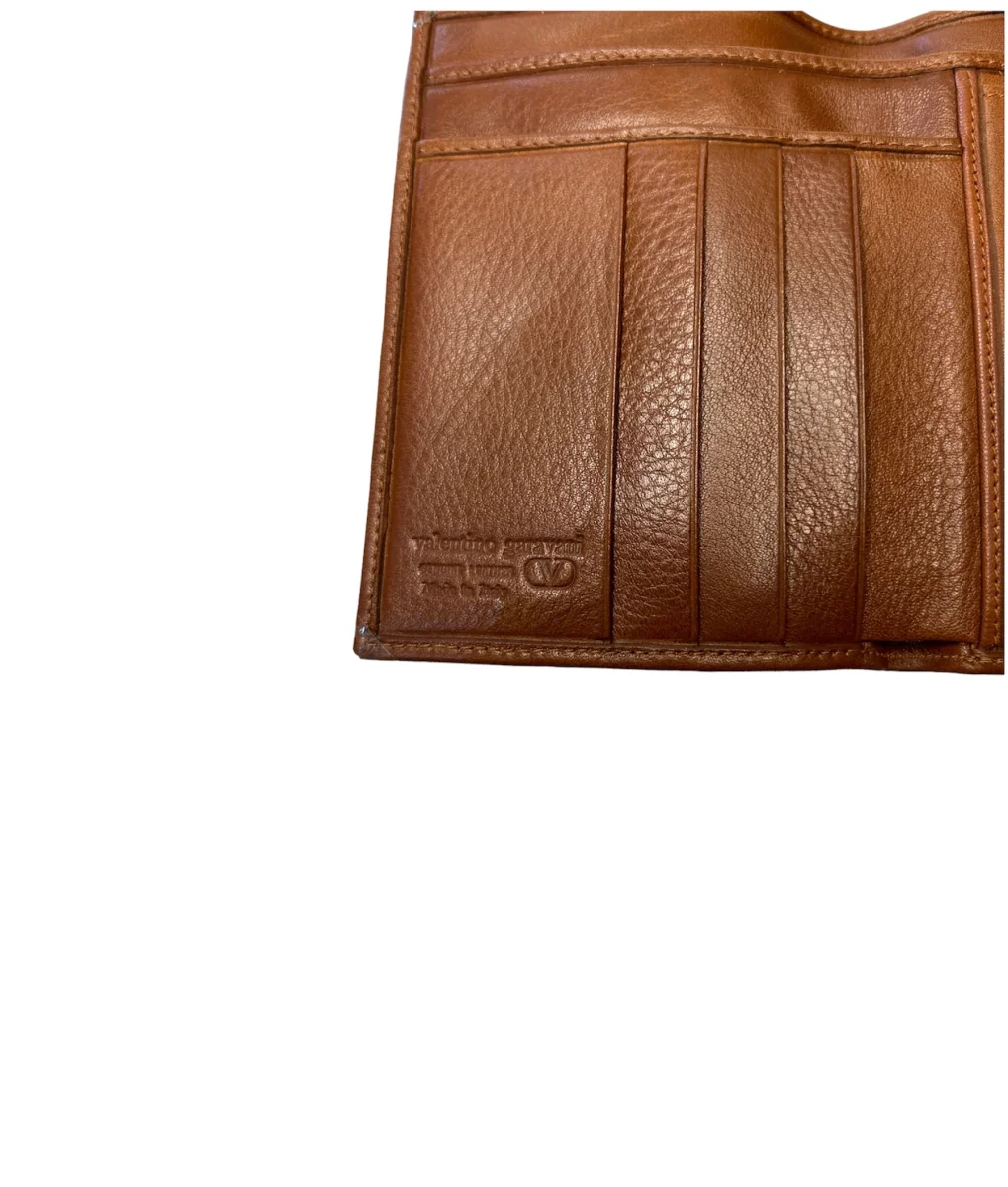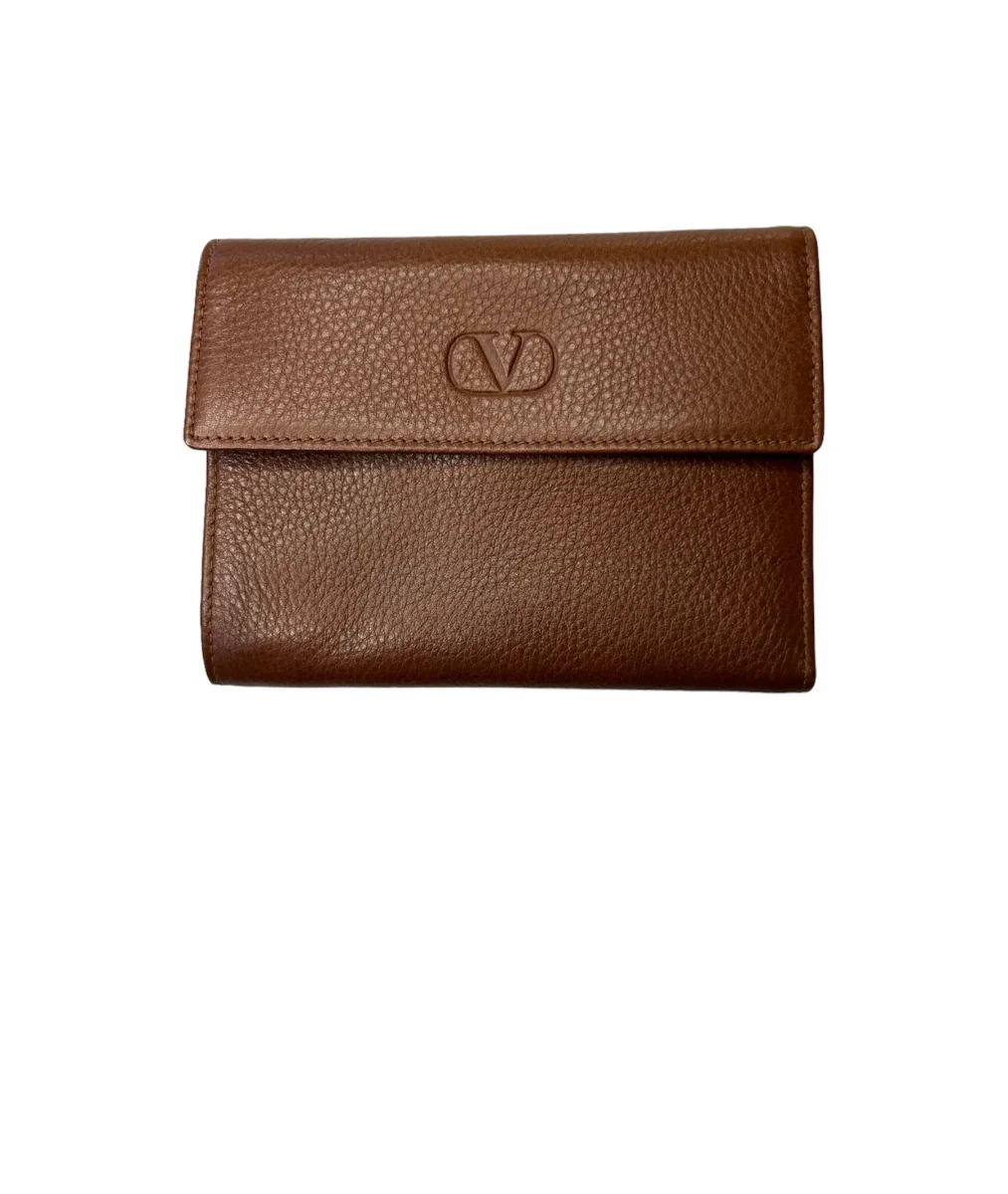 Valentino Portafoglio chiusura bottone – vera pelle liscia e bottalata – marrone