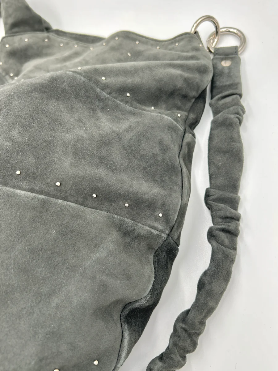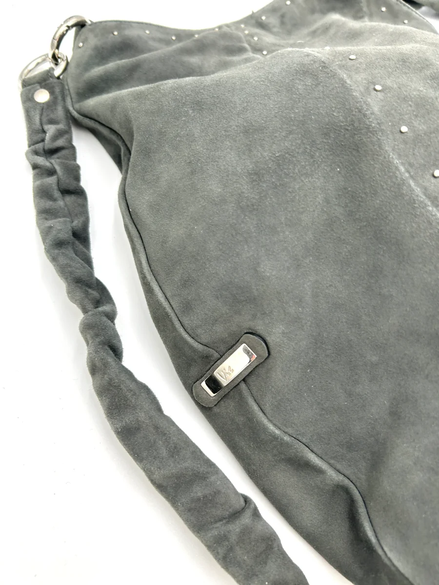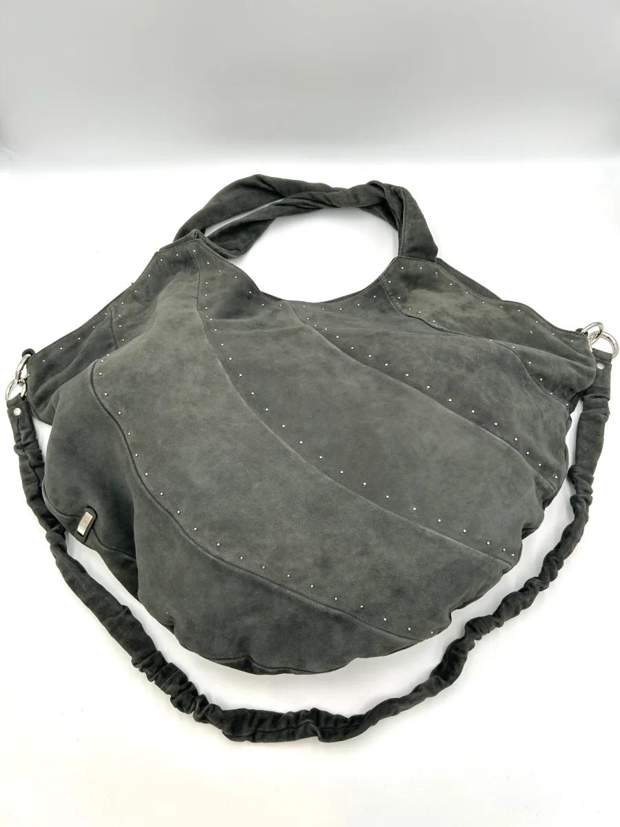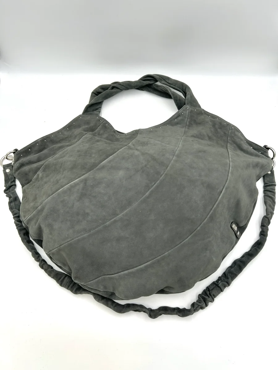 Vic Matie Borsa mezza luna grande da spalla con tracolla – pelle scamosciata – grigio